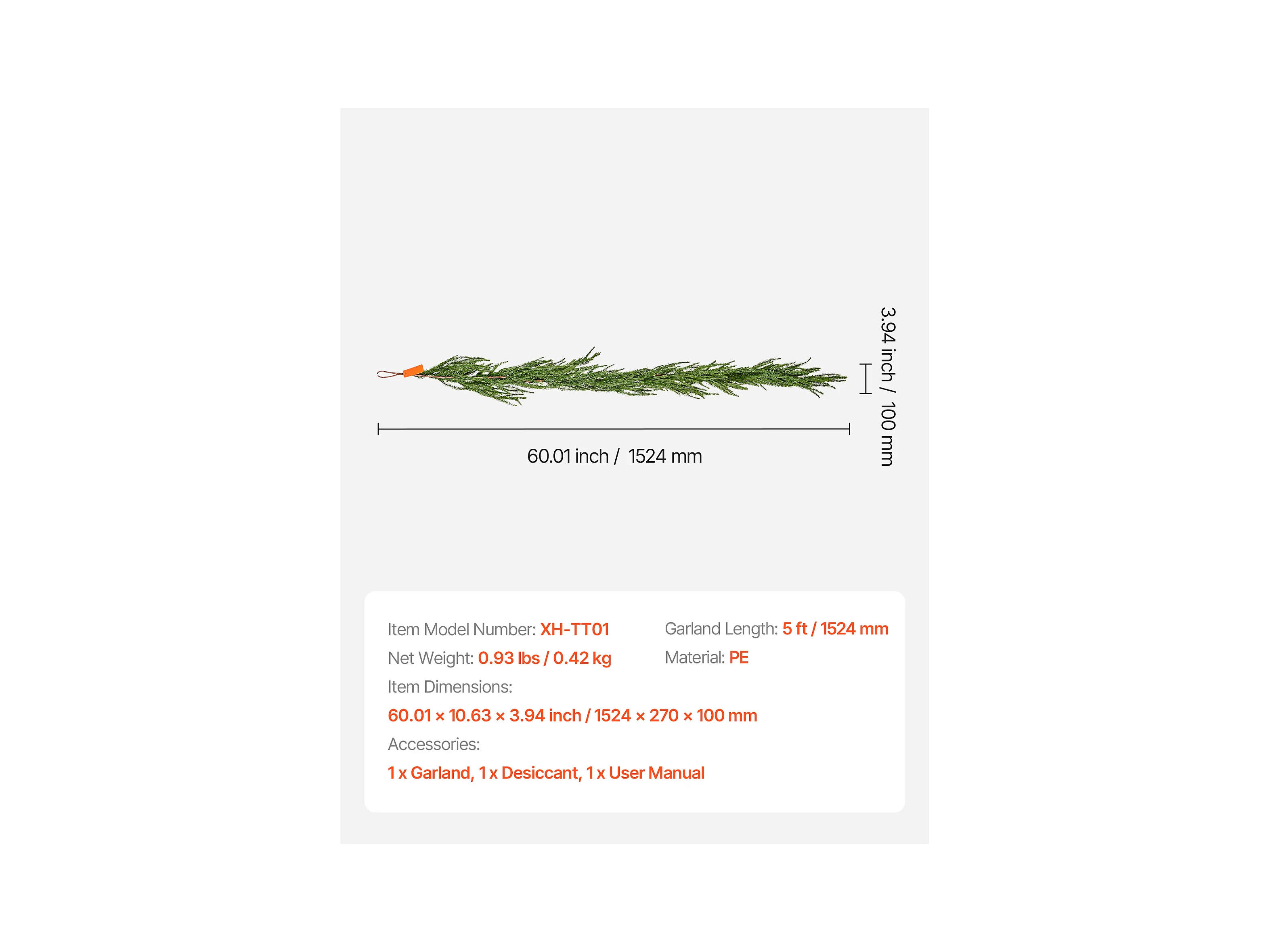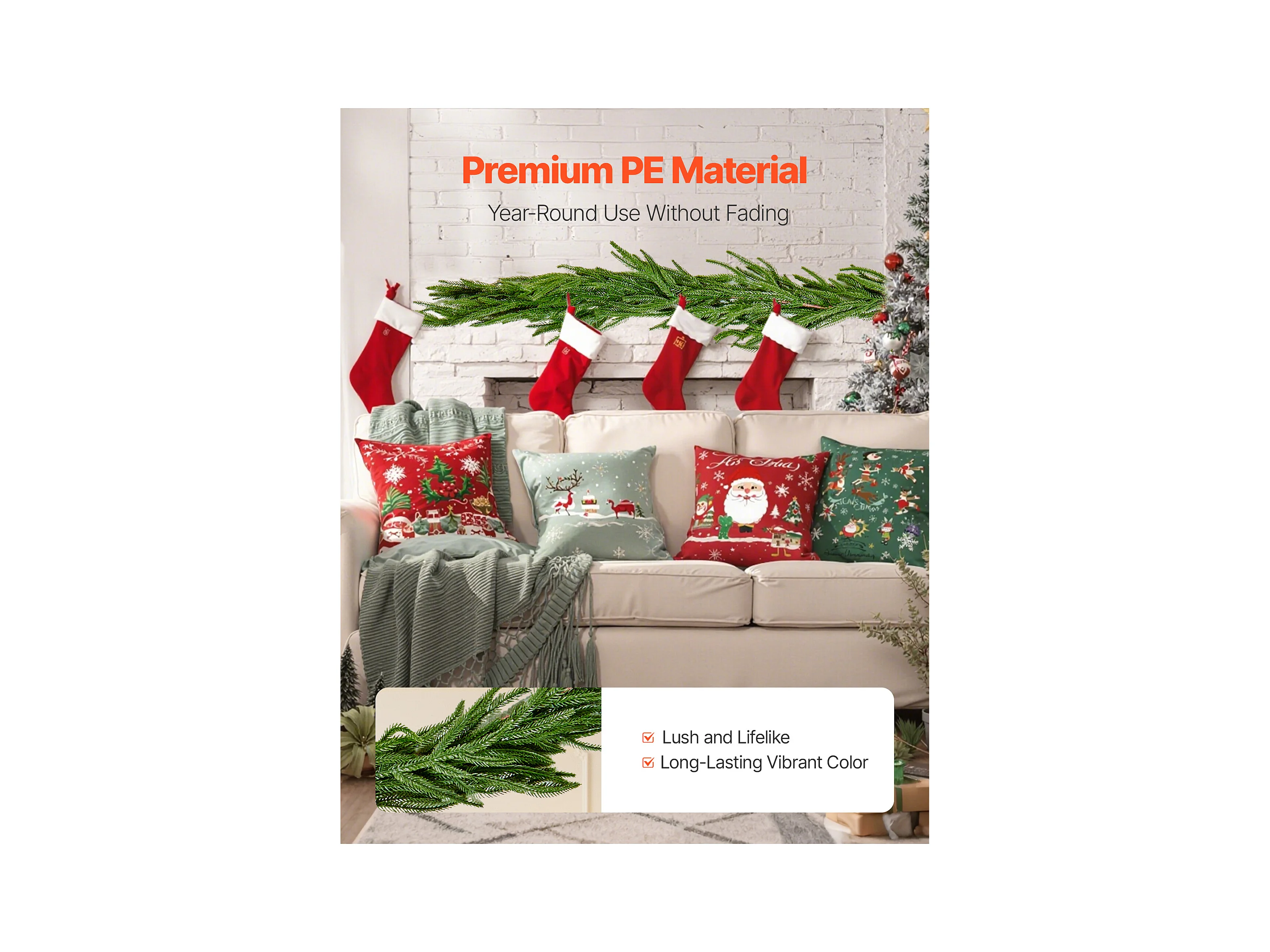 Ghirlanda di Natale SucceBuy, 1,5 m, Ghirlanda di Pino Norfolk Artificiale, Decorazione Natalizia Verde, per Interno, Esterno, su Tavolo, Mensola del Camino