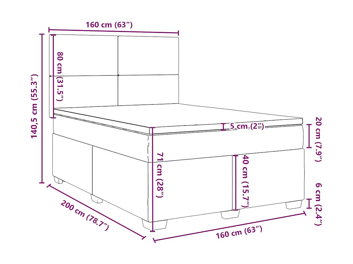 Giroletto a Molle con Materasso Blu 160x200 cm in Velluto