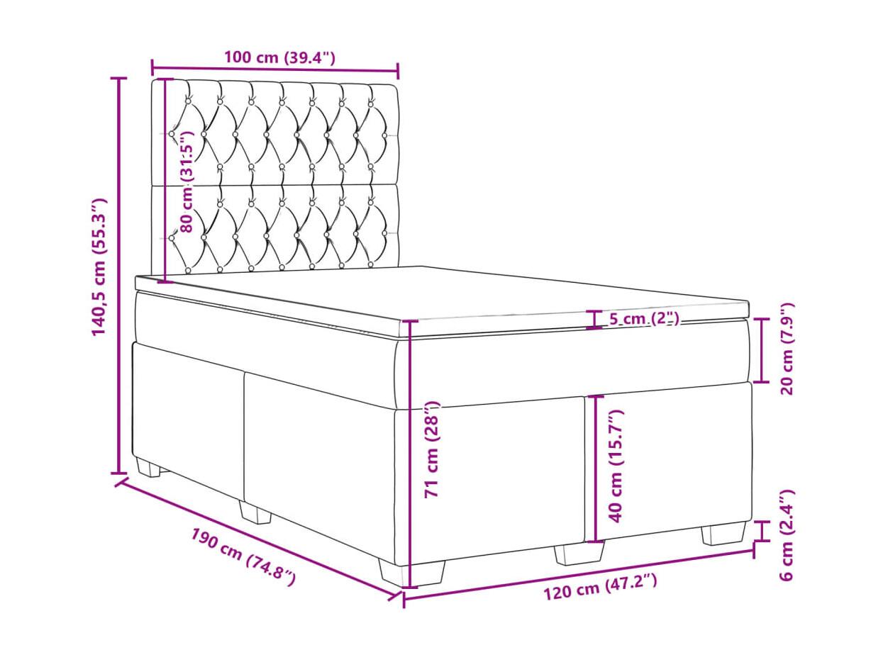 Giroletto a Molle con Materasso Grigio Scuro 120x190 cm Velluto