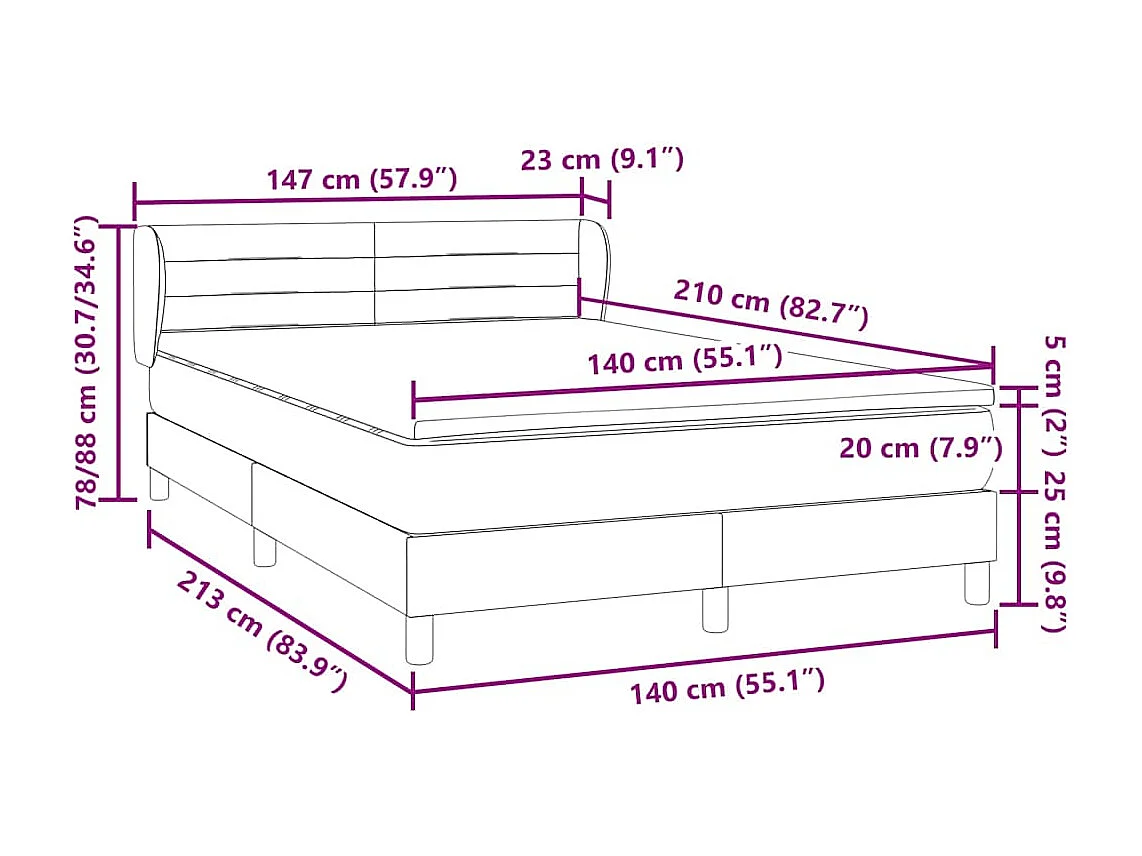 Giroletto a Molle con Materasso Grigio Chiaro 140x210cm Velluto