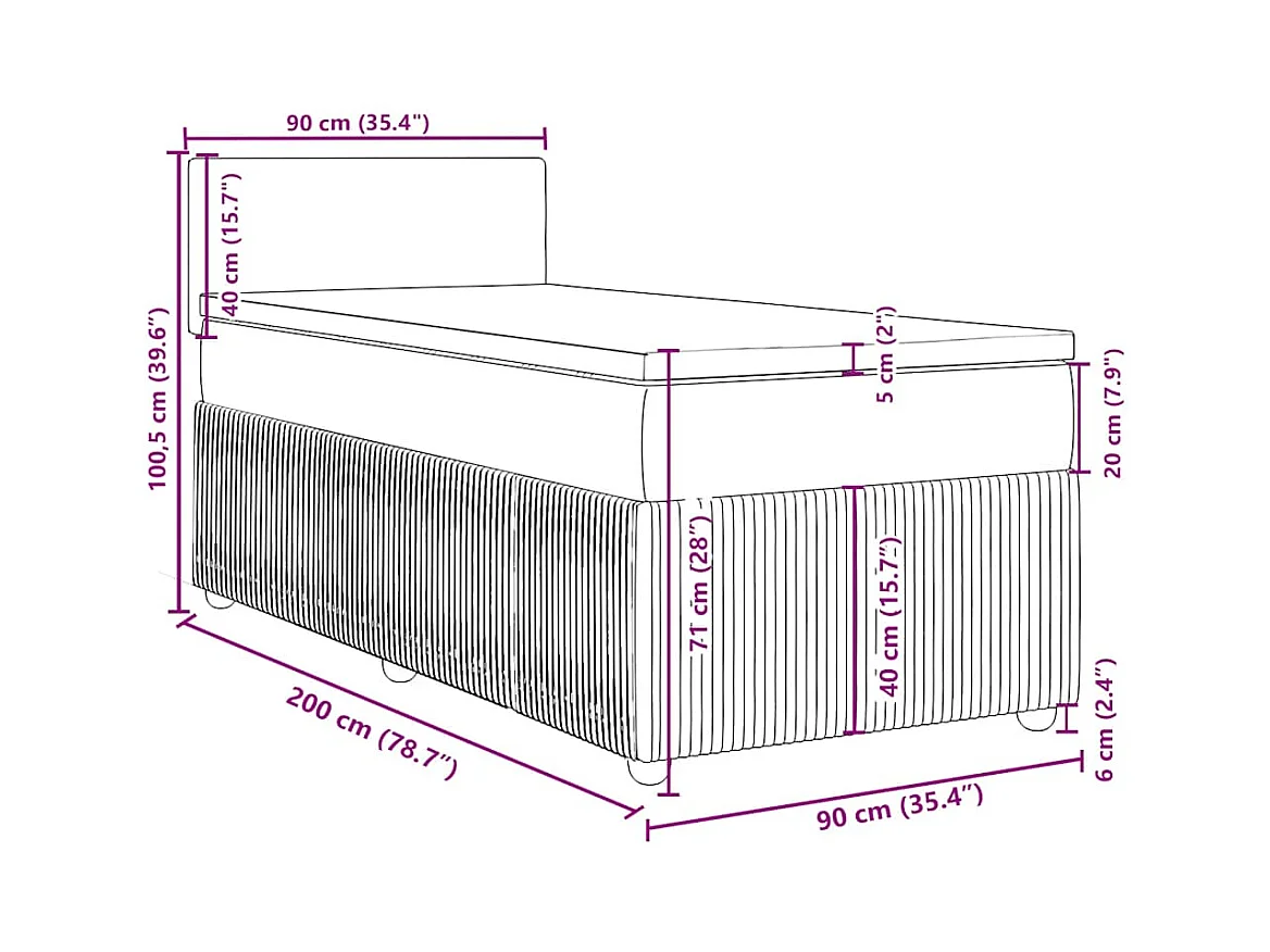 Giroletto a Molle con Materasso Grigio Scuro 90x200 cm Tessuto