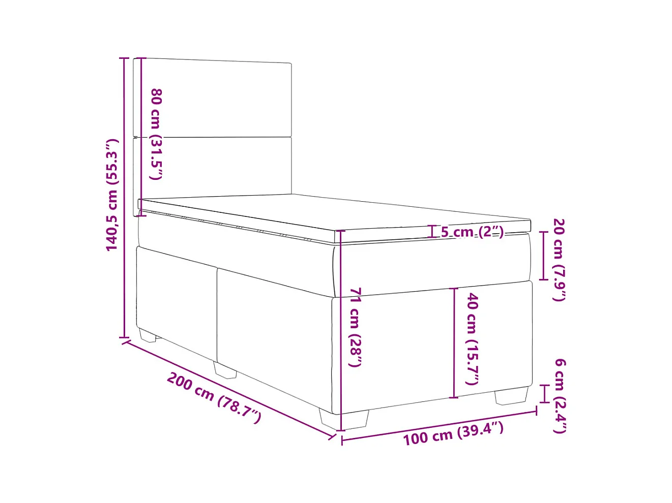 Giroletto a Molle con Materasso Nero 100x200 cm in Velluto