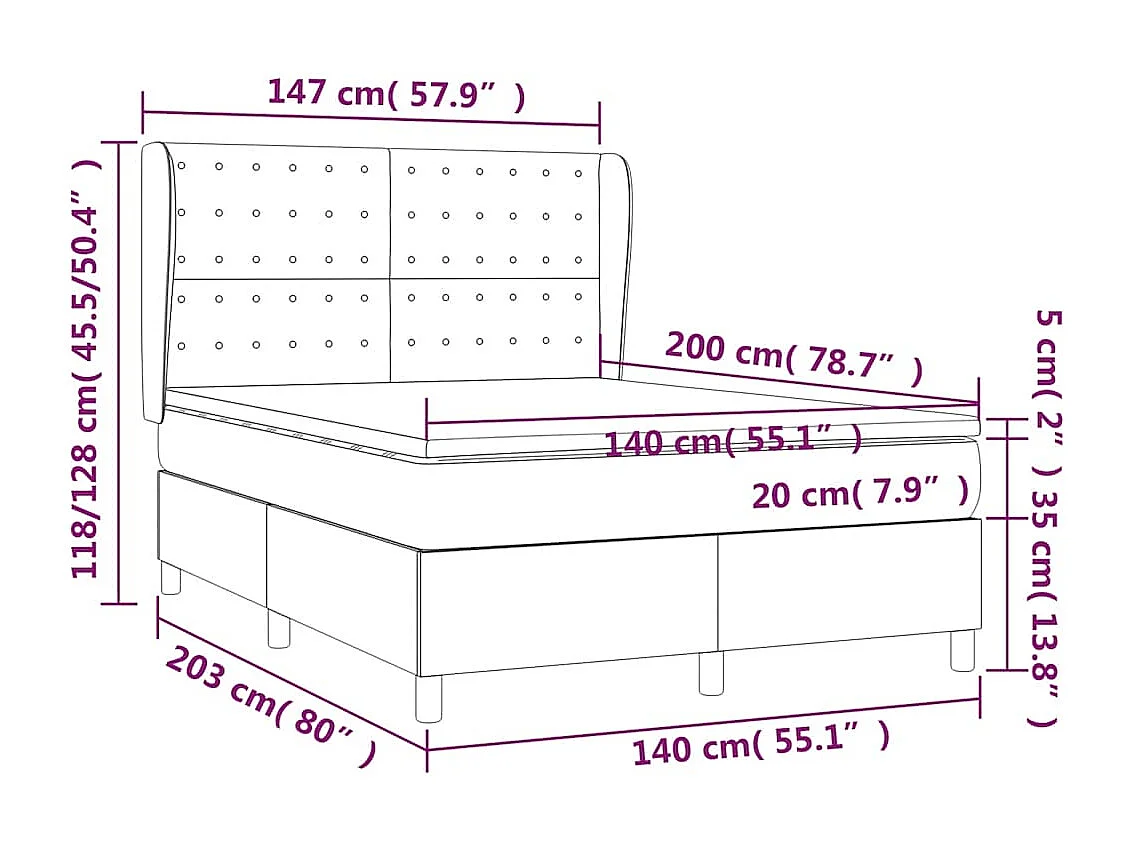 Letto a Molle con Materasso e LED Verde Scuro 140x200cm Velluto