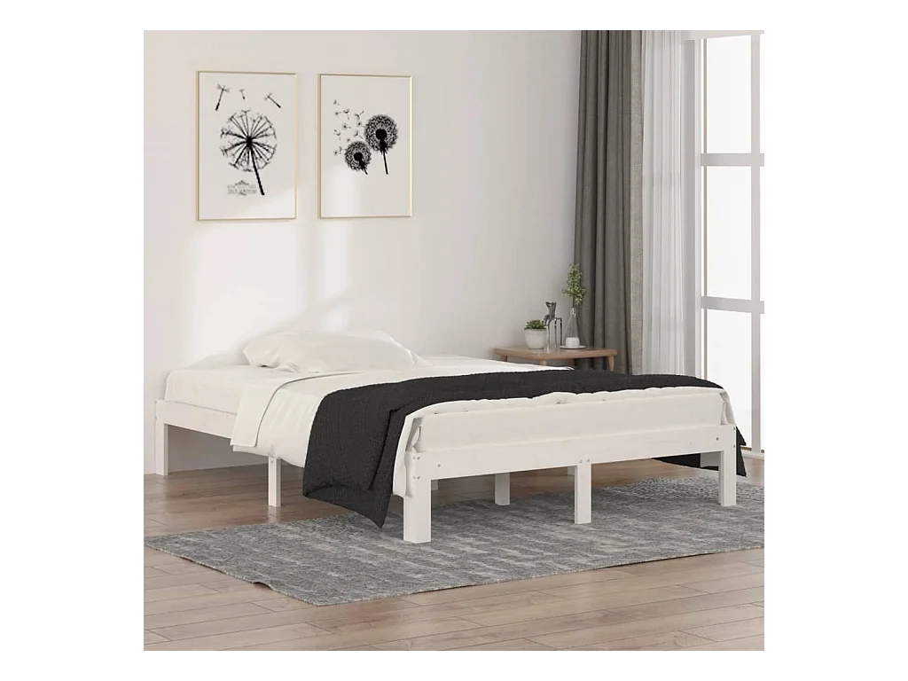 Letto senza Materasso Bianco 135x190 cm Legno Massello di Pino