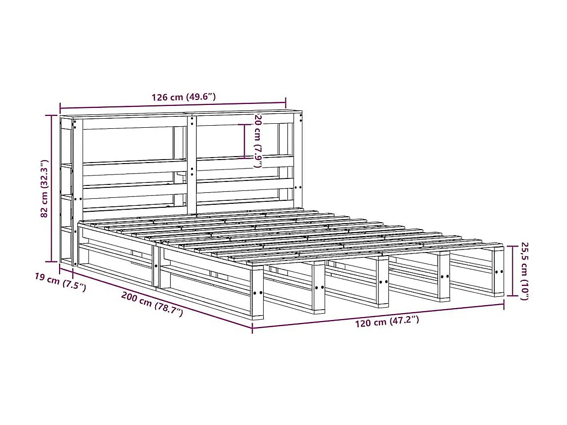 Letto senza Materasso 120x200 cm in Legno Massello di Pino