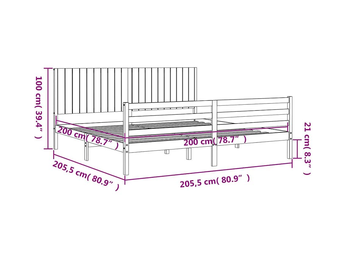Letto senza Materasso 200x200 cm in Legno Massello di Pino
