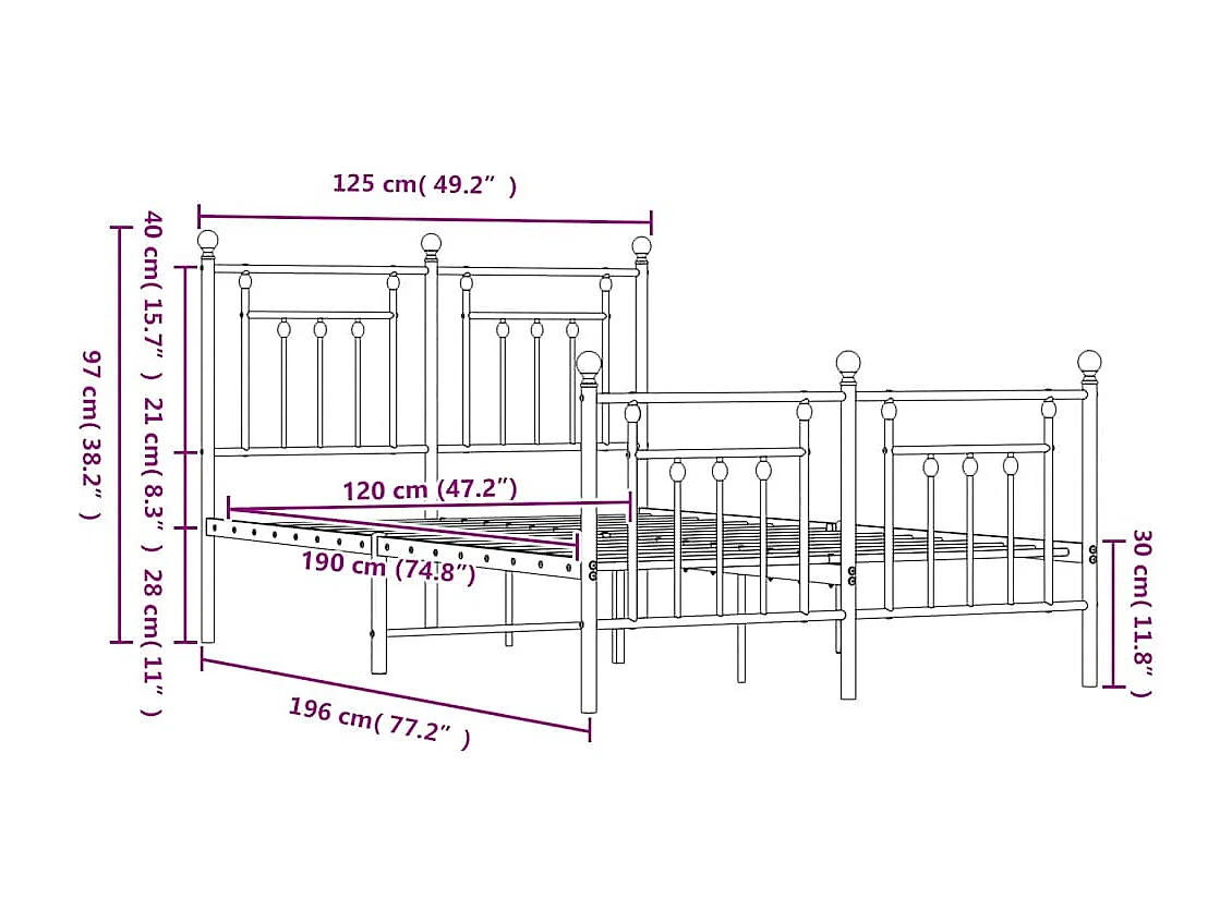 Giroletto con Testiera e Pediera Metallo Bianco 120x190 cm