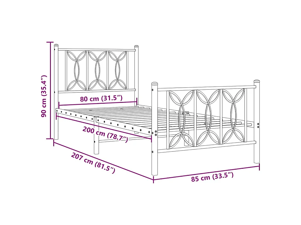 Giroletto con Testiera e Pediera Metallo Nero 80x200 cm