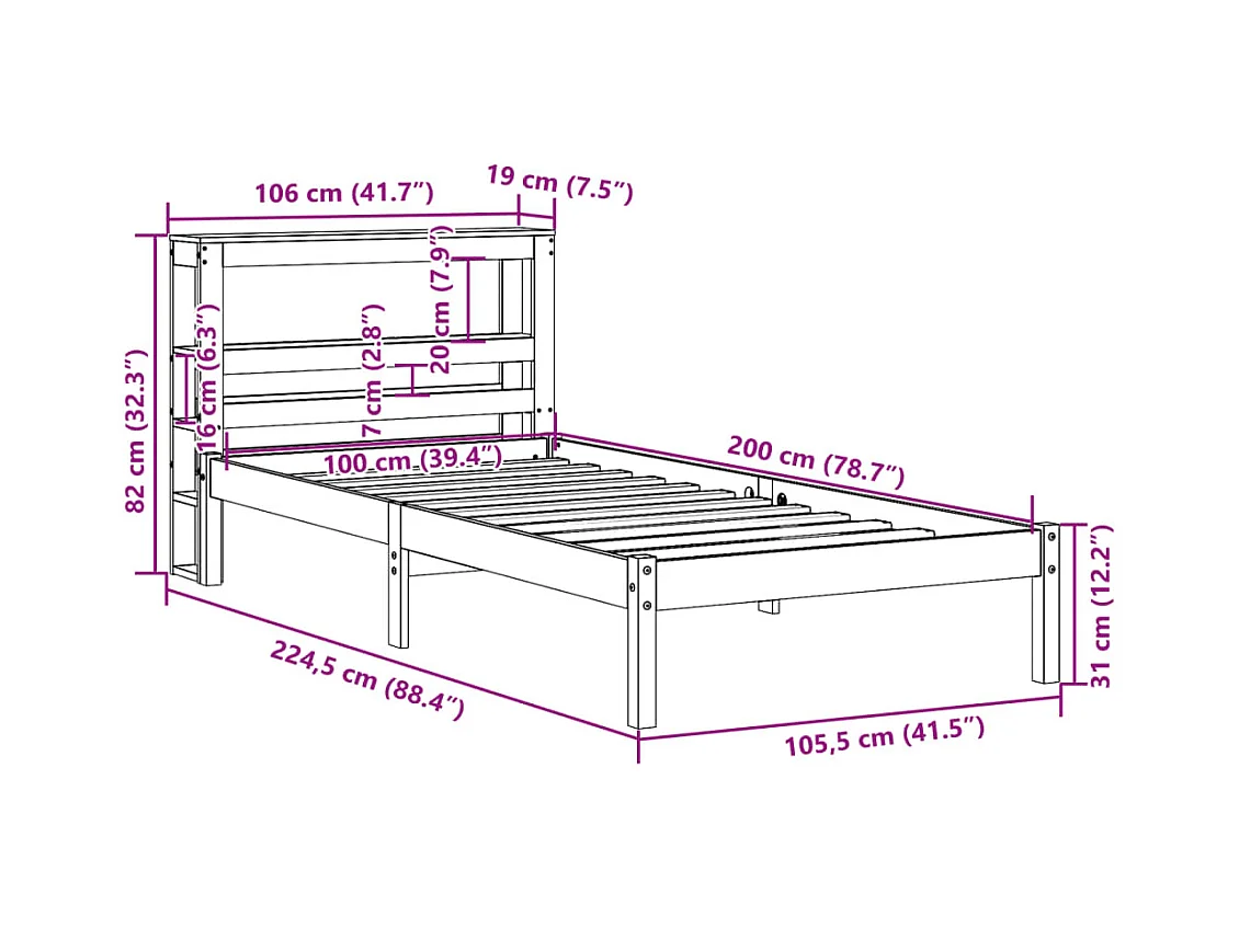 Letto senza Materasso Marrone Cera 100x200 cm in Legno di Pino