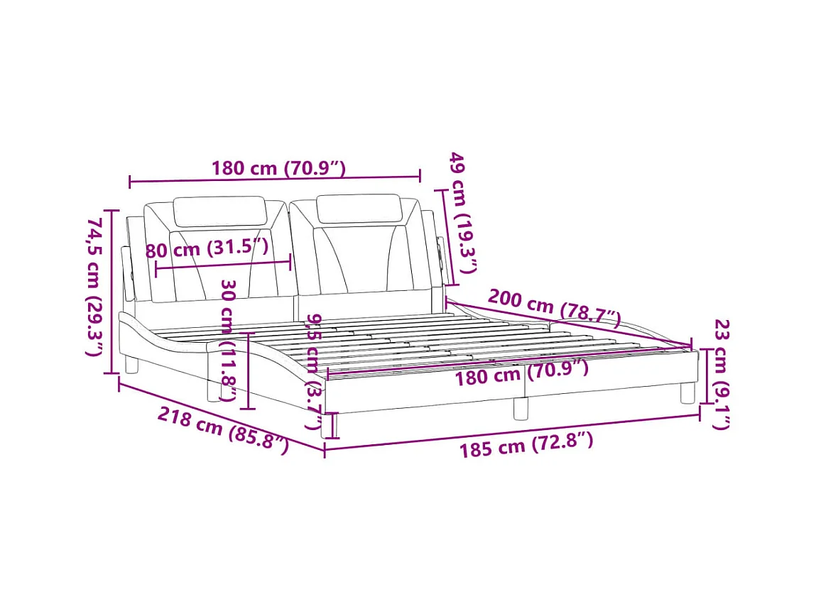 Giroletto con Testiera Nero 180x200 cm in Similpelle