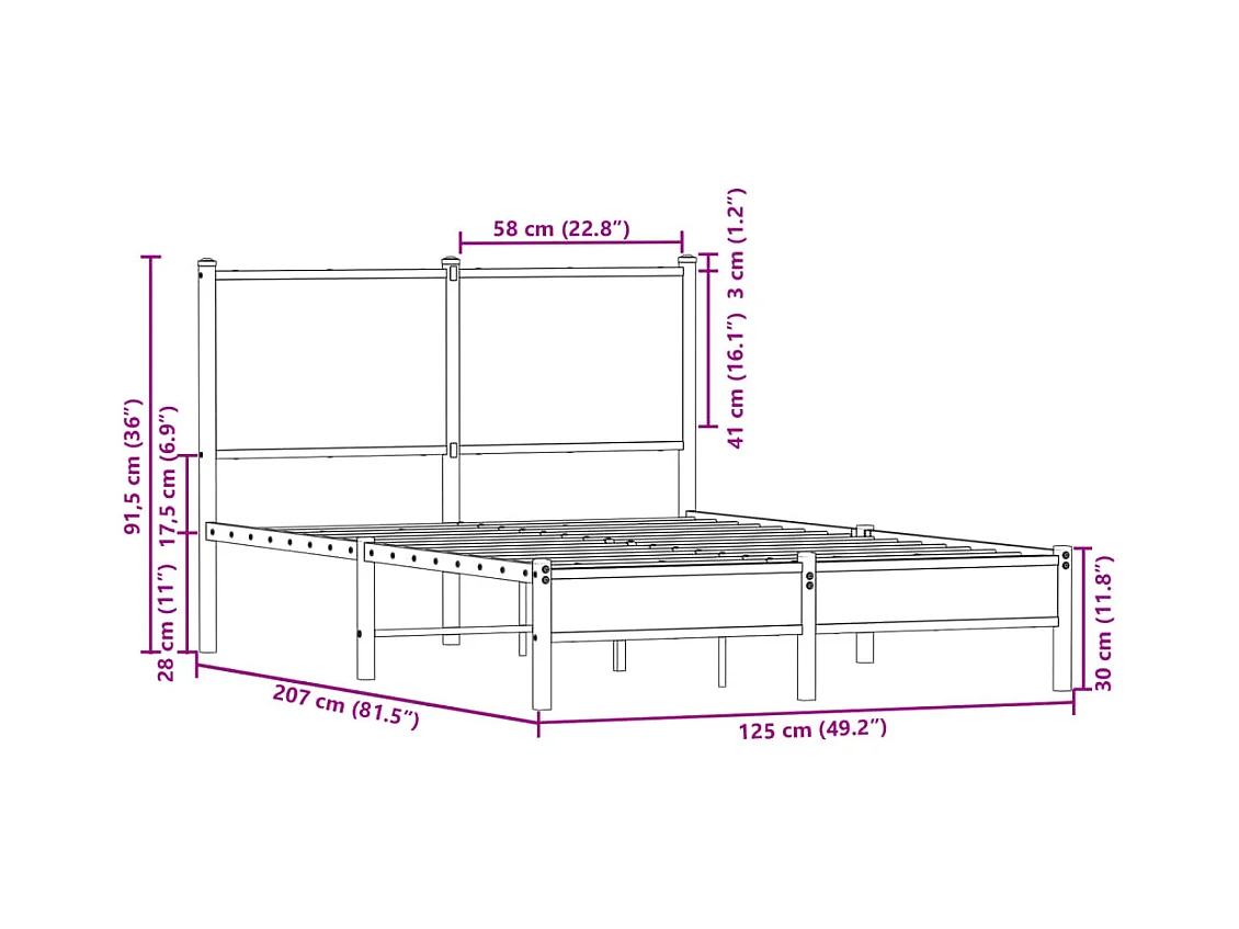 Giroletto senza Materaso in Metallo Rovere Sonoma 120x200 cm