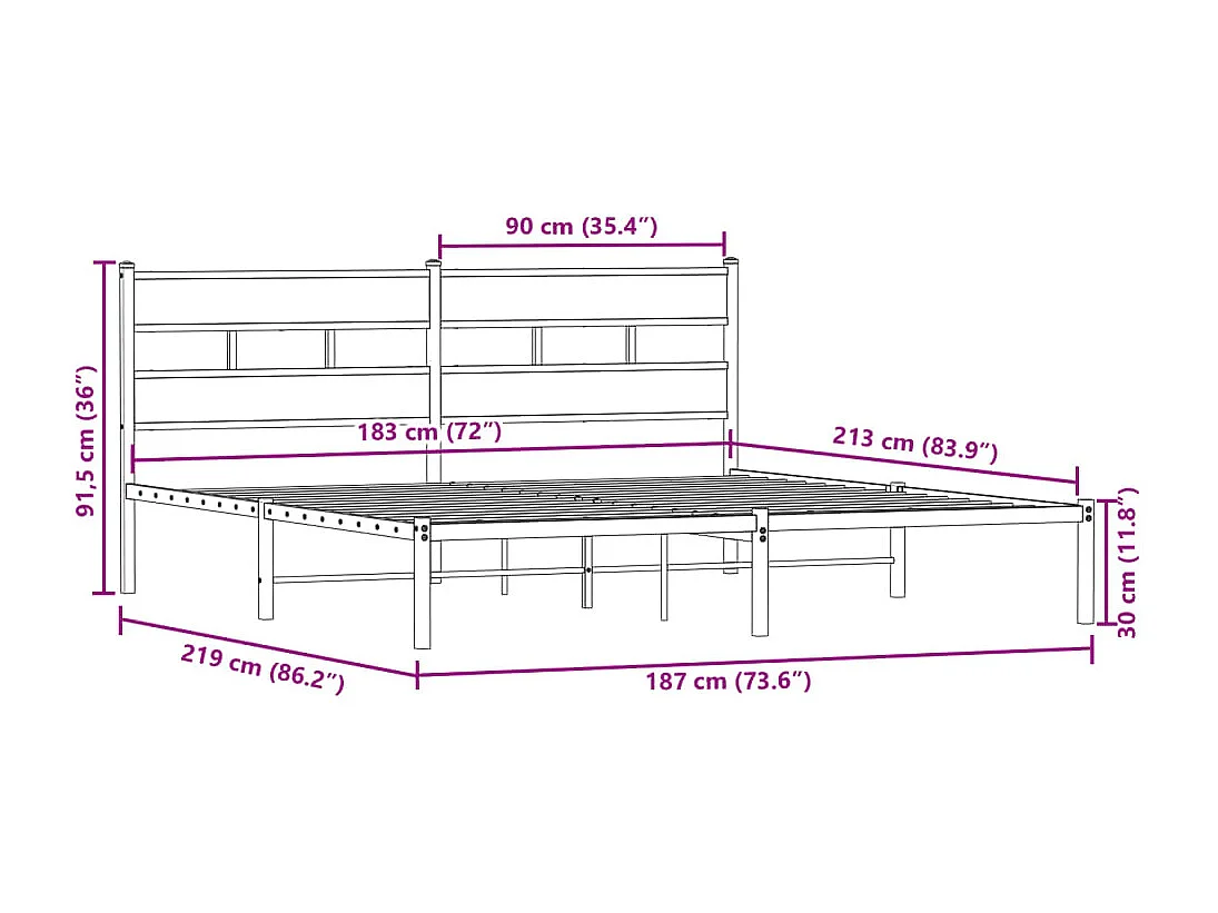 Giroletto con Testiera e Pediera Metallo Nero 183x213 cm