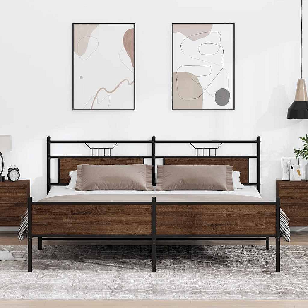 Giroletto senza Materaso in Metallo Rovere Marrone 193x201 cm