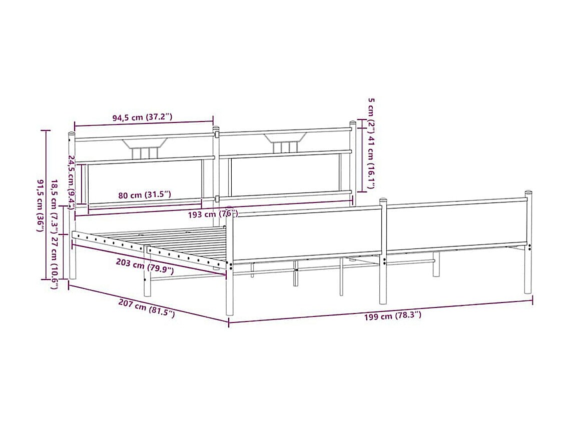 Giroletto senza Materaso in Metallo Rovere Sonoma 193x201 cm
