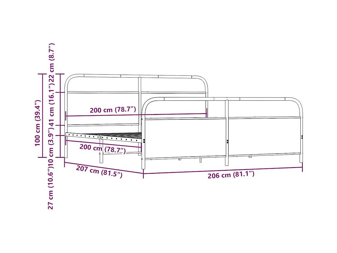 Giroletto senza Materaso in Metallo Rovere Sonoma 200x200 cm