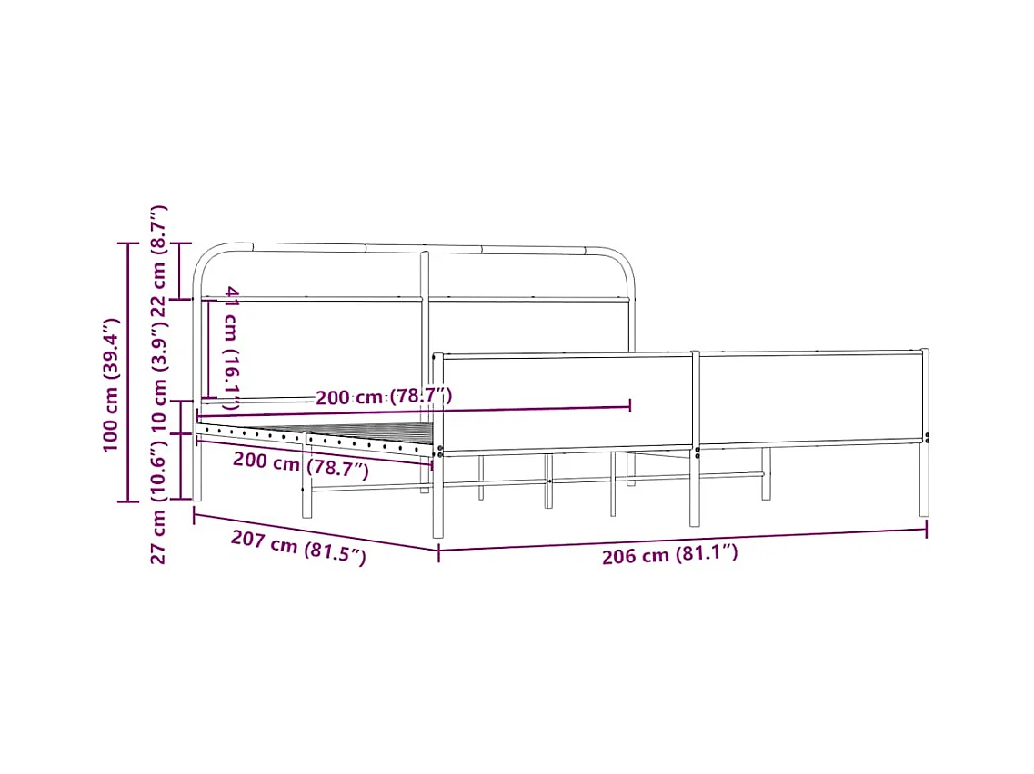 Giroletto senza Materaso in Metallo Rovere Sonoma 200x200 cm