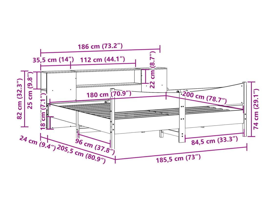 Giroletto con Libreria senza Materasso 180x200 cm in Legno Pino