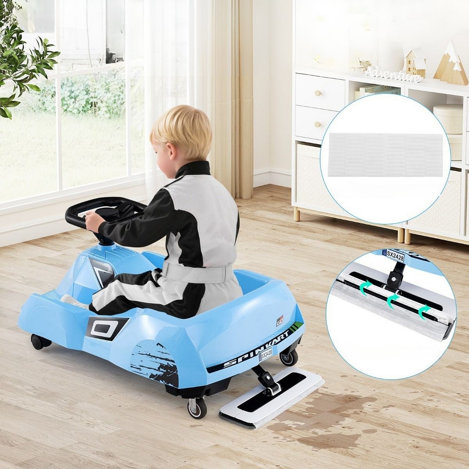Go-kart elettrico per la pulizia 12V con mop staccabile Telecomando a 3 velocità Blu