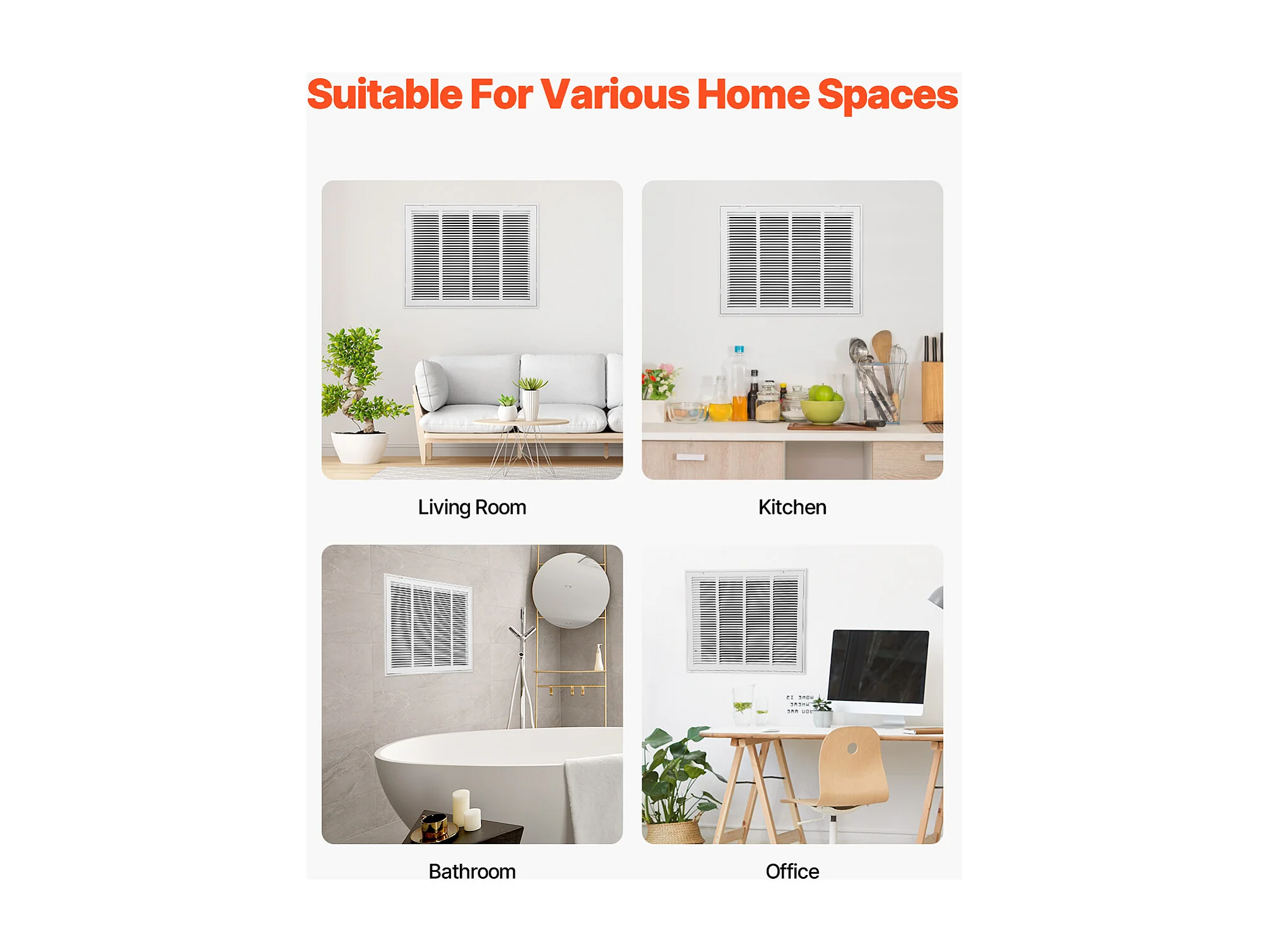 Griglia Filtro SucceBuy di Ritorno Aria per Apertura di Installazione (60,5 x 45,5 cm), Filtro Non Incluso, Griglia di Evacuazione Aria per Montaggio a Parete