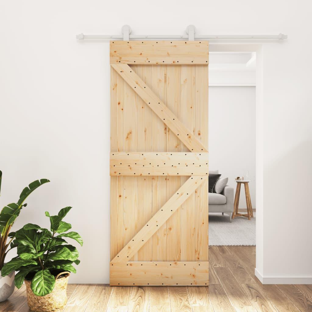 Kit porta scorrevole e ferramenta 85x210 cm in pino massello