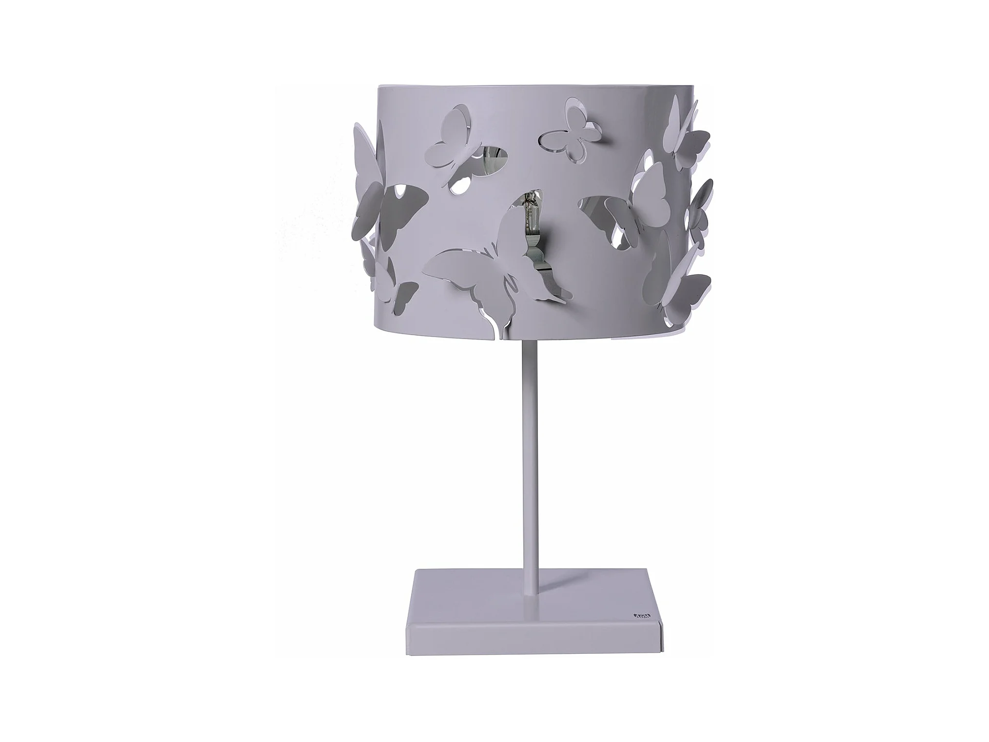 Lampada da tavolo Farfallosa 20x20x37,2 cm in ferro traforato con farfalle in rilievo Effetto luce decorativo Attacco E27 Made in Italy Crema