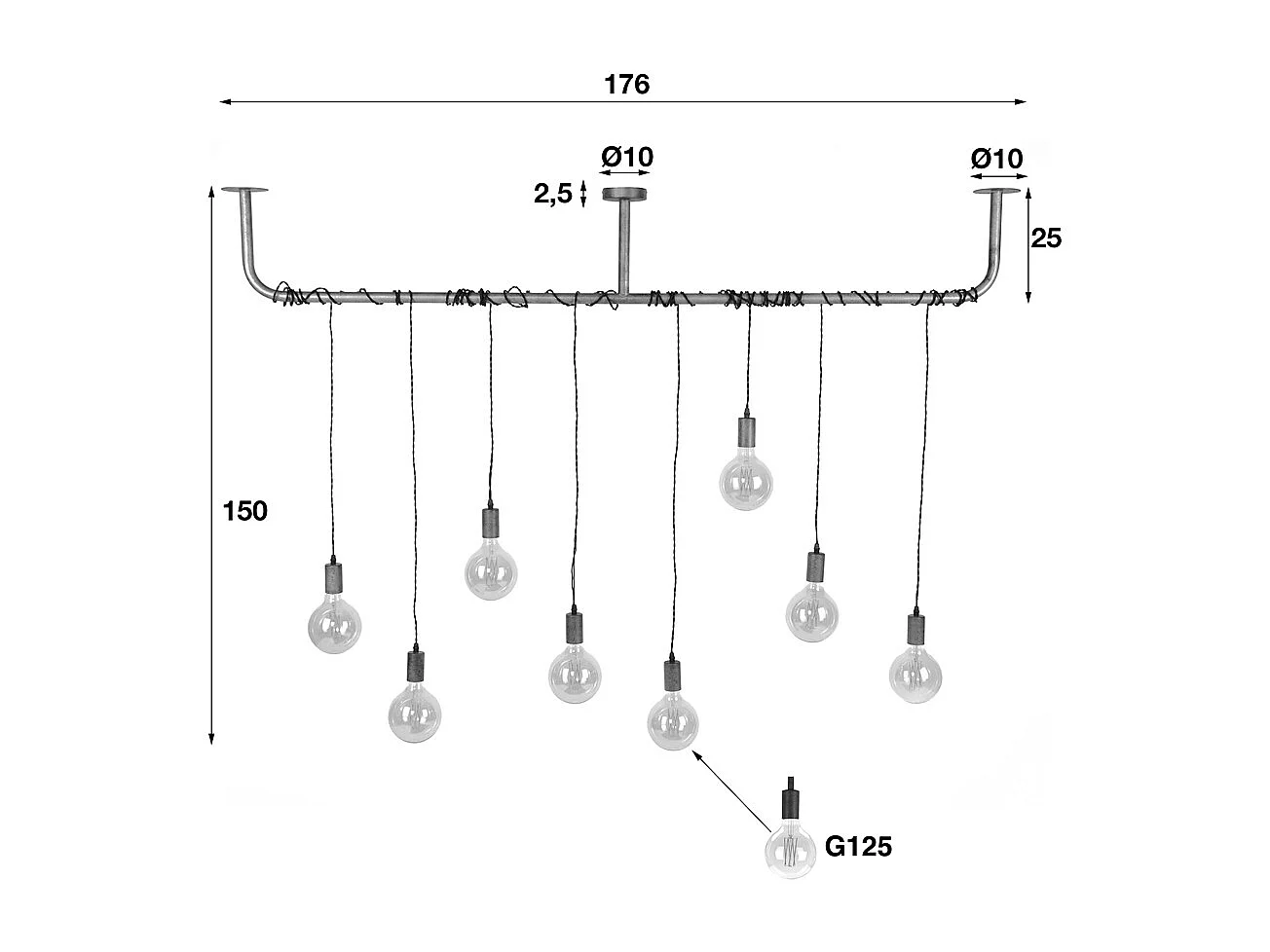 Pluvia Sospensione in ferro con vetro grigio pyrex 1 luce 142 Ø20 BL264-S1-GR