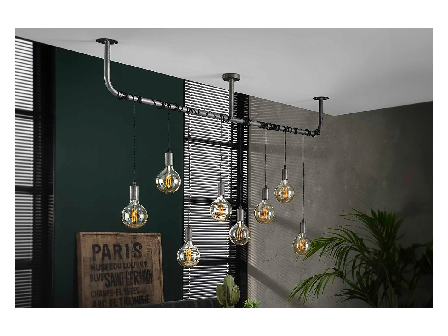 Nemesi Sospensione in ferro con vetri grigio pyrex 3 luci 141 Ø50 BL280-S3-GR