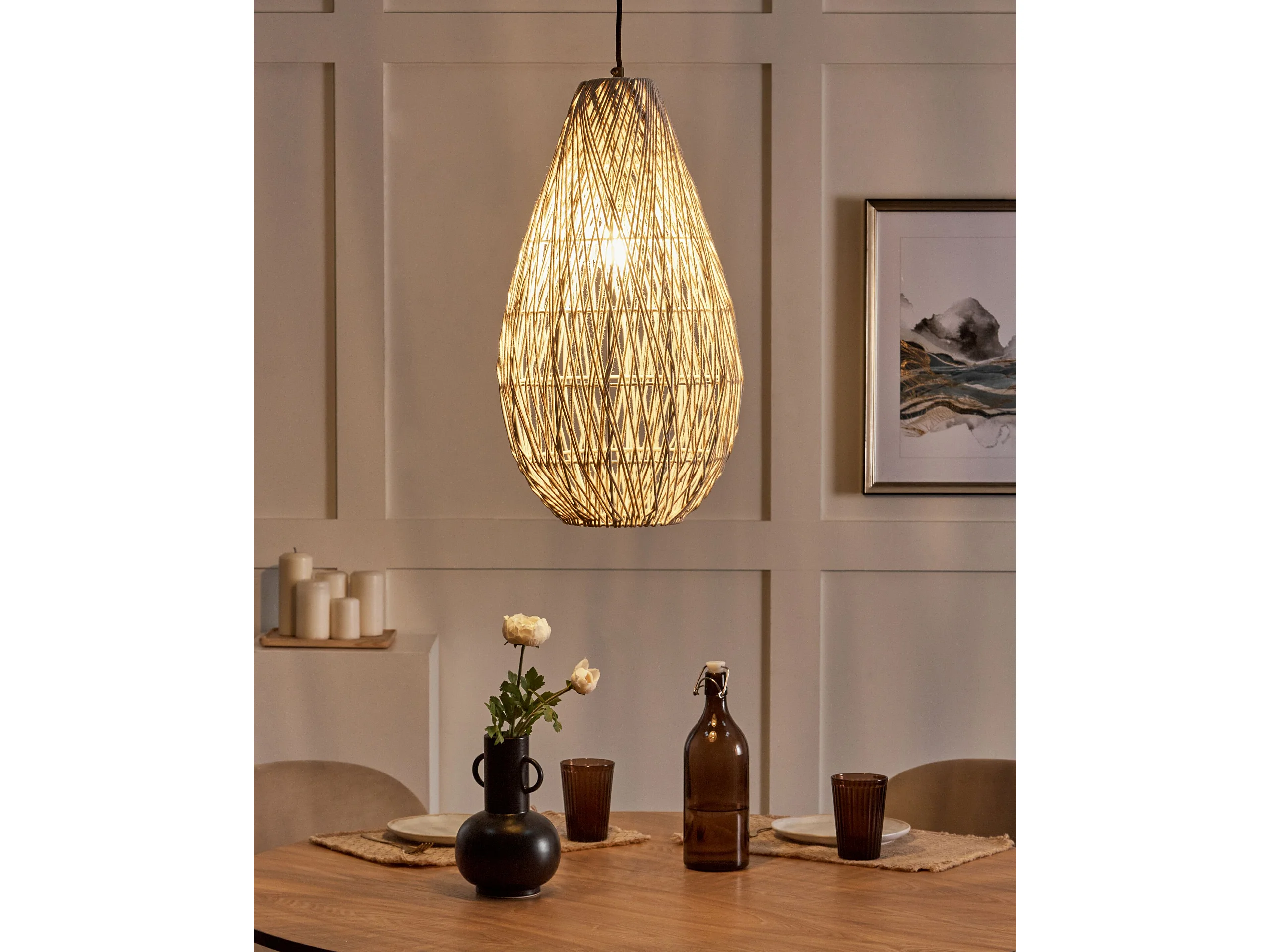 Lampada a sospensione in fibra naturale