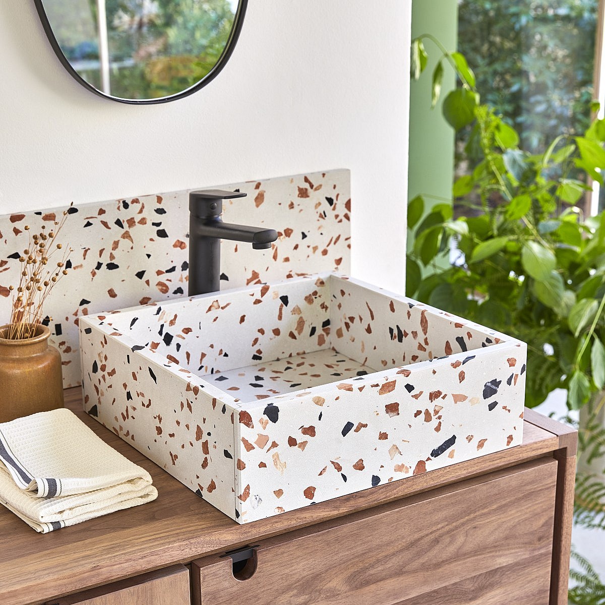 Credenza Ava in battuto di terrazzo premium brown 80 cm