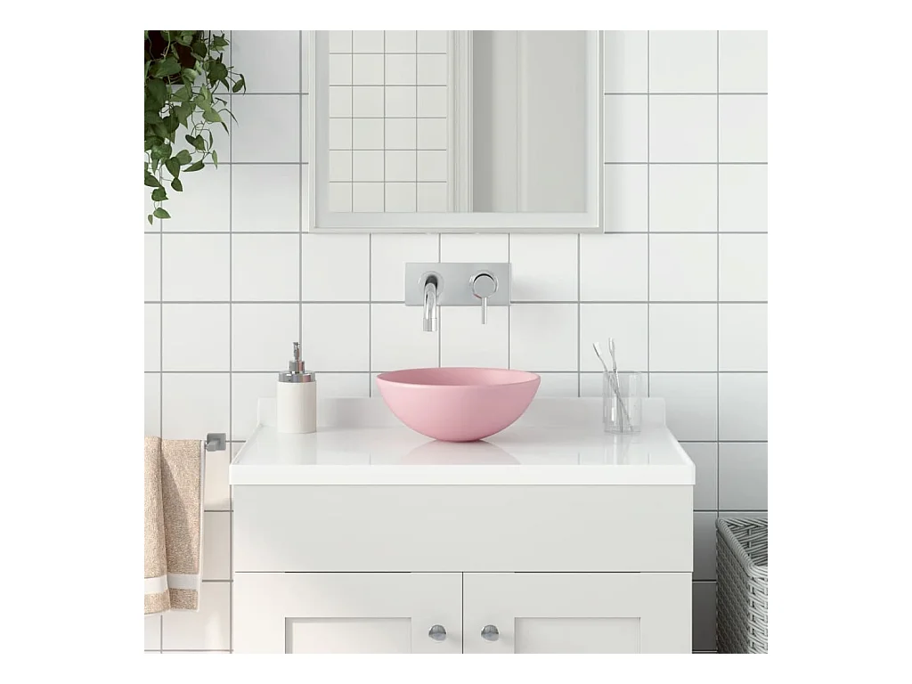 Lavandino da bagno rotondo in ceramica rosa opaco
