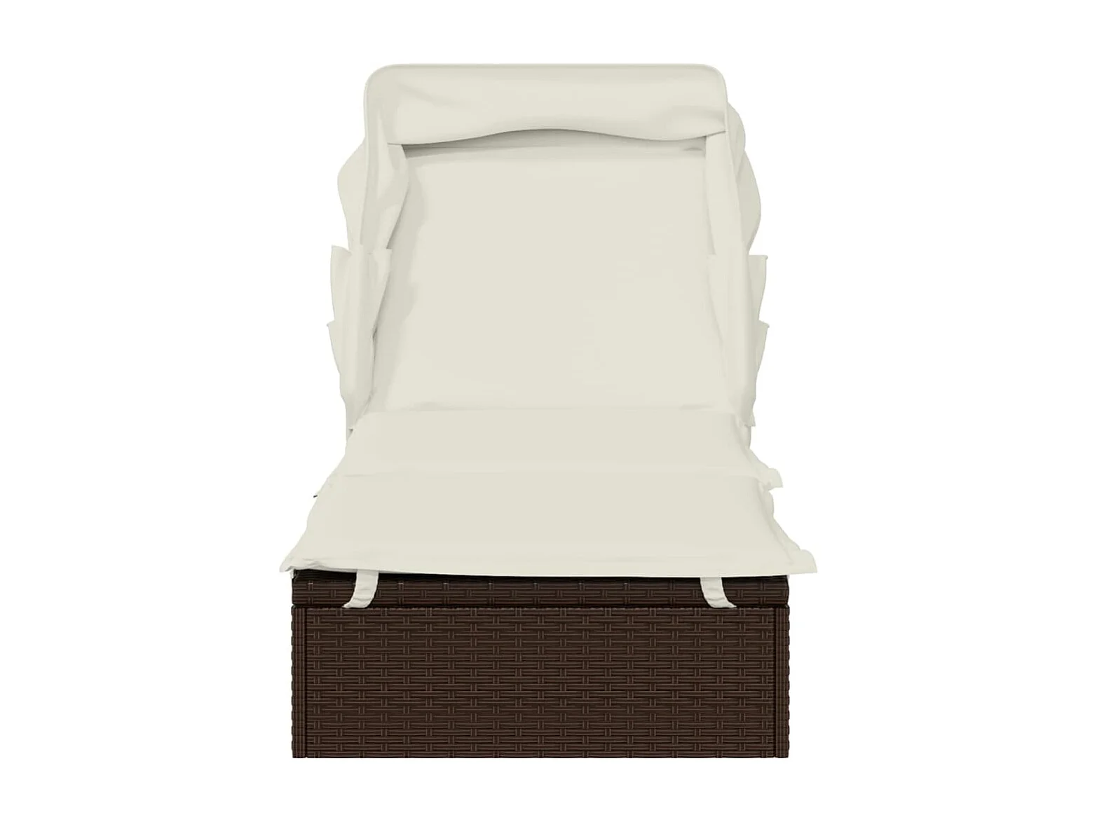 Lettino con Tetto Pieghevole Marrone 213x63x97 cm Polyrattan