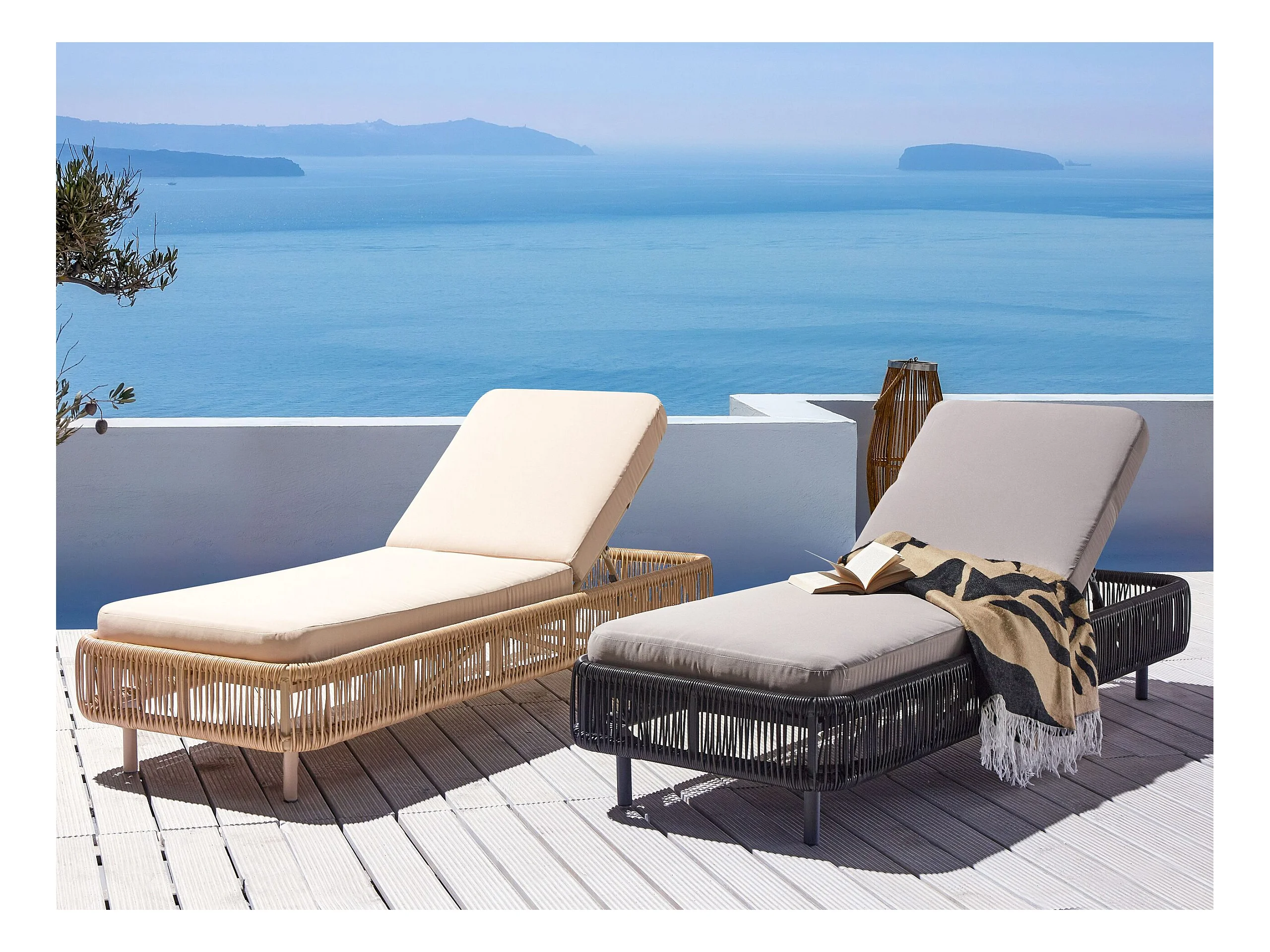Lettino Prendisole con Cuscino in Polyrattan Grigio