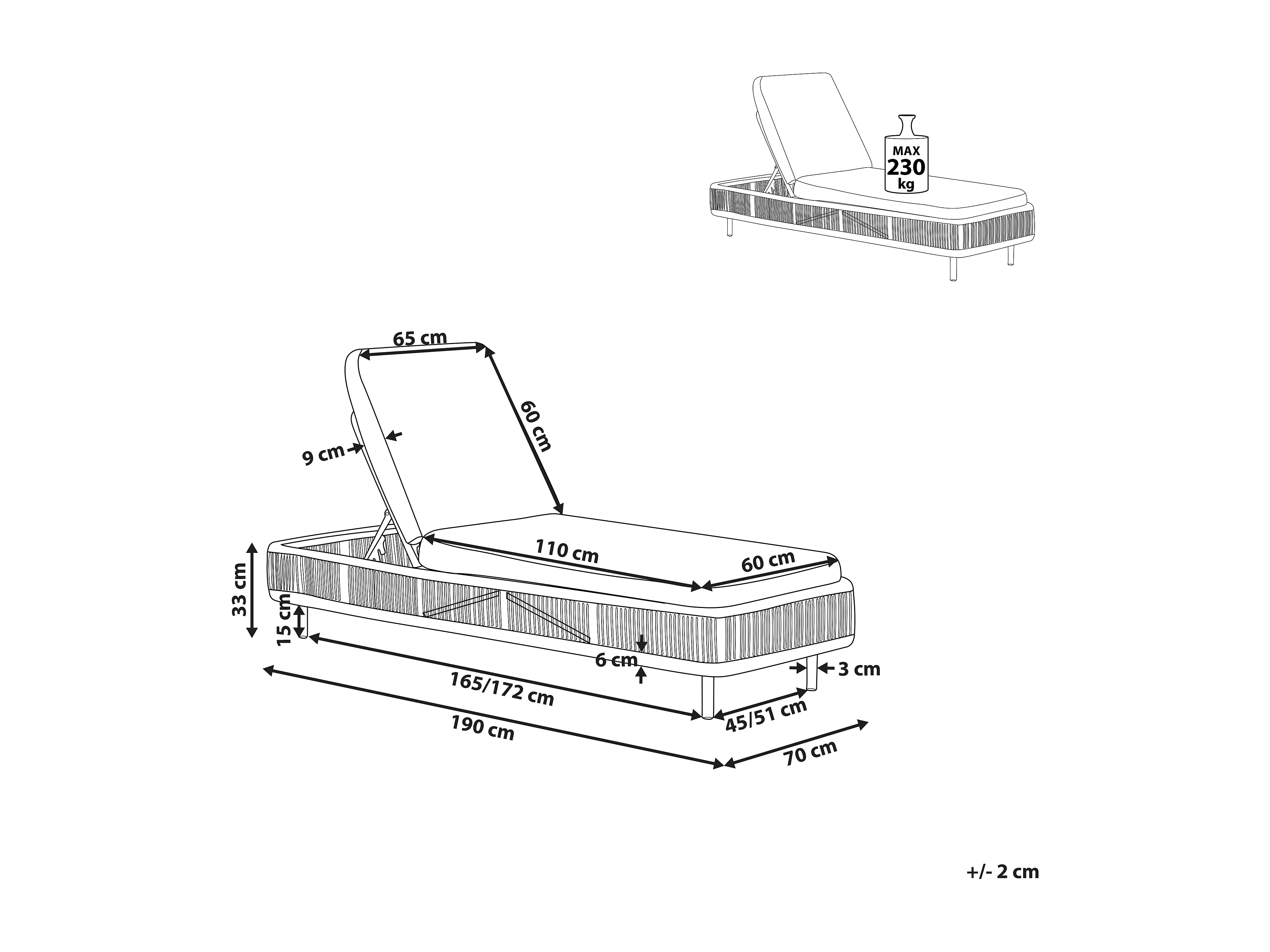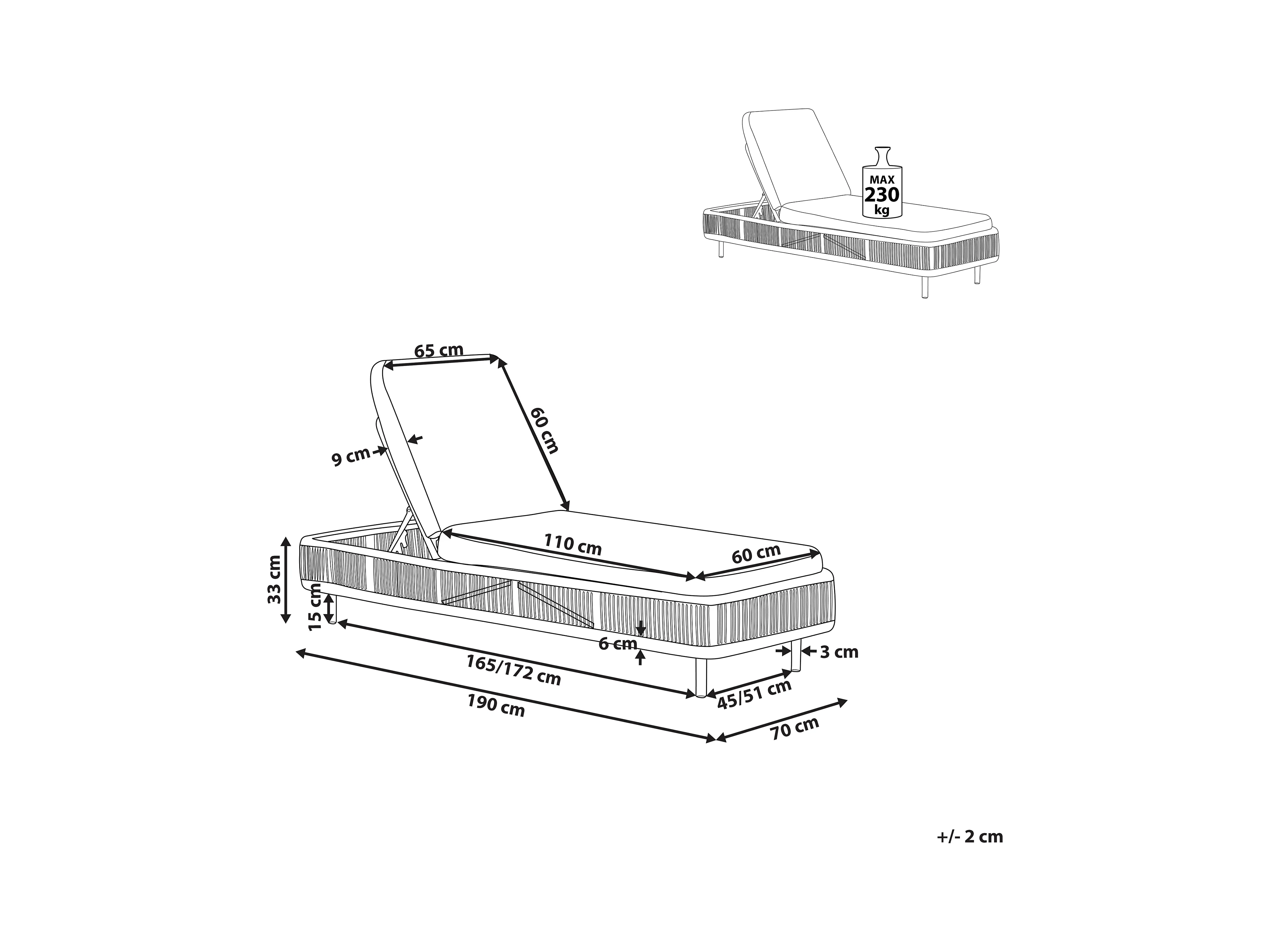 Lettino 1 pz con Cuscino Grigio 201x55x62 cm in Polyrattan
