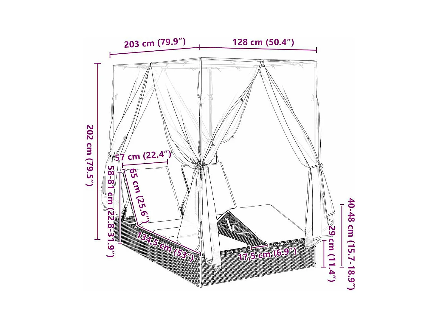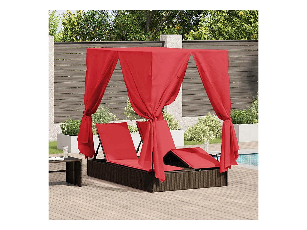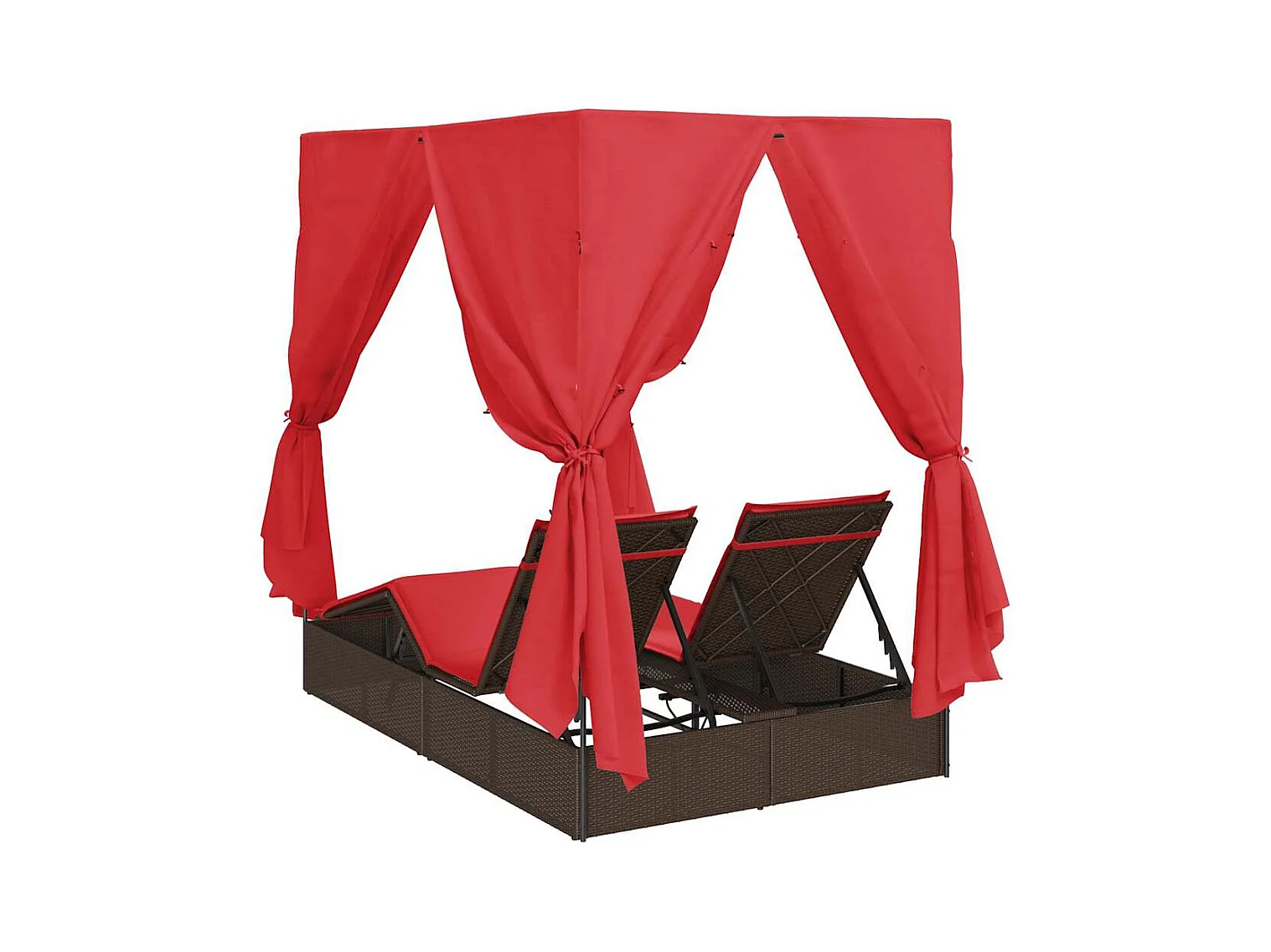 Lettino doppi con Tetto Marrone 205 x 129 x 200 cm Rattan PE