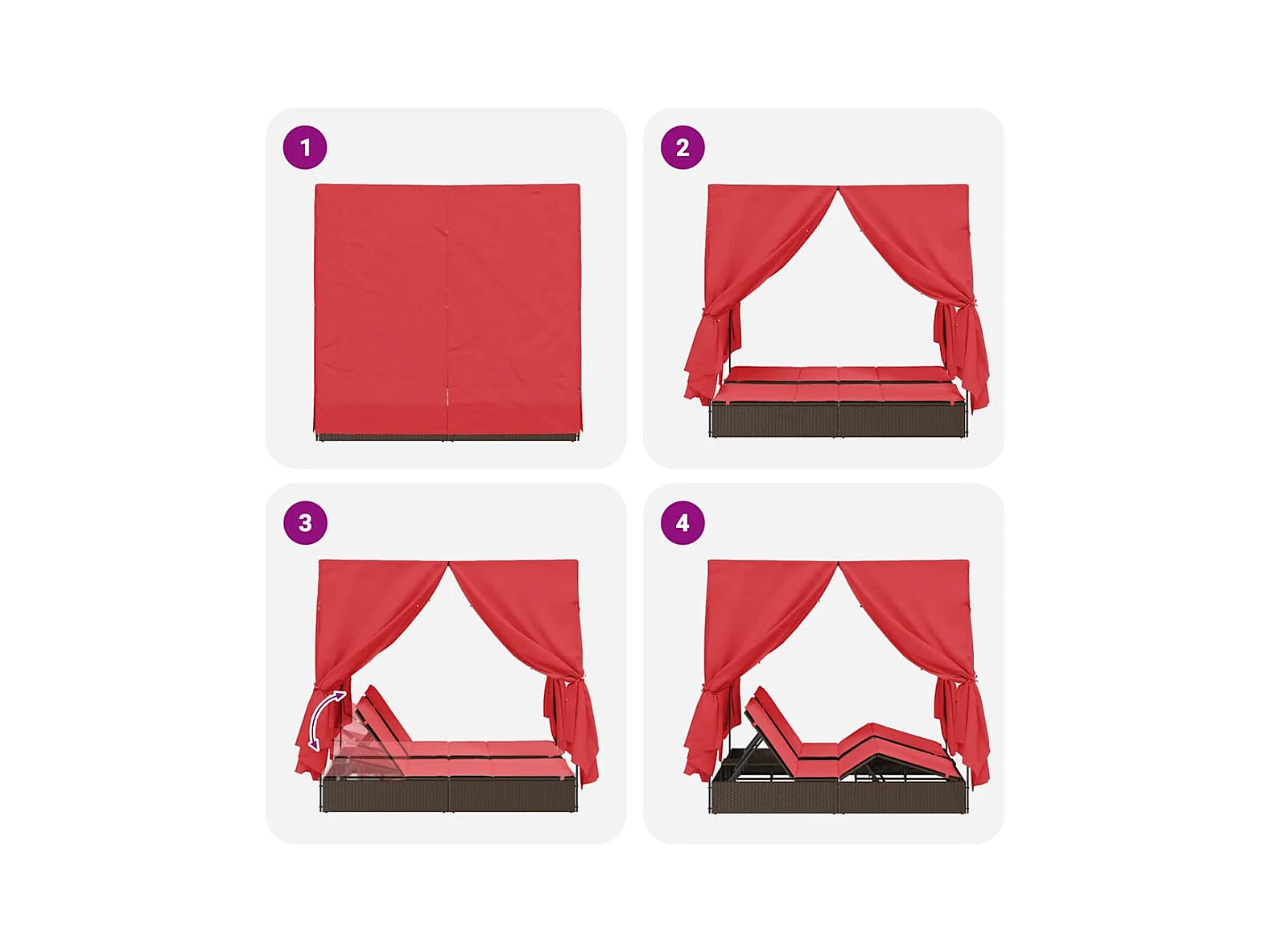 Lettino Prendisole con Cuscino in Polyrattan Marrone