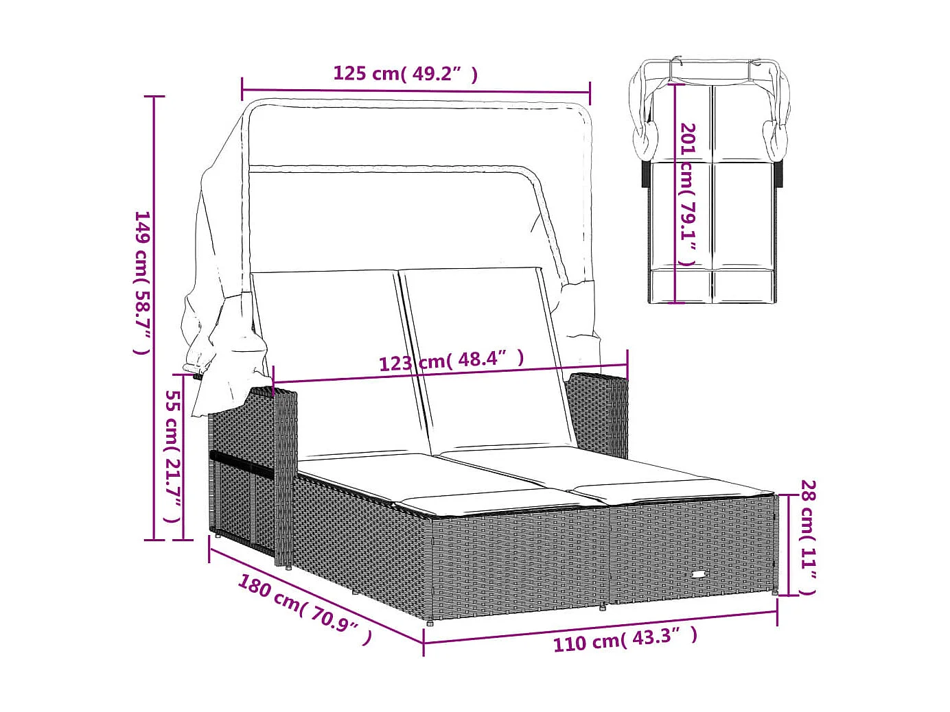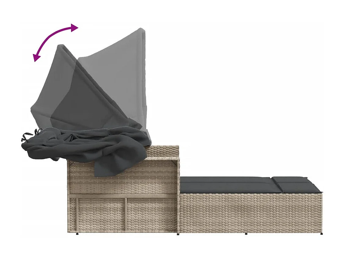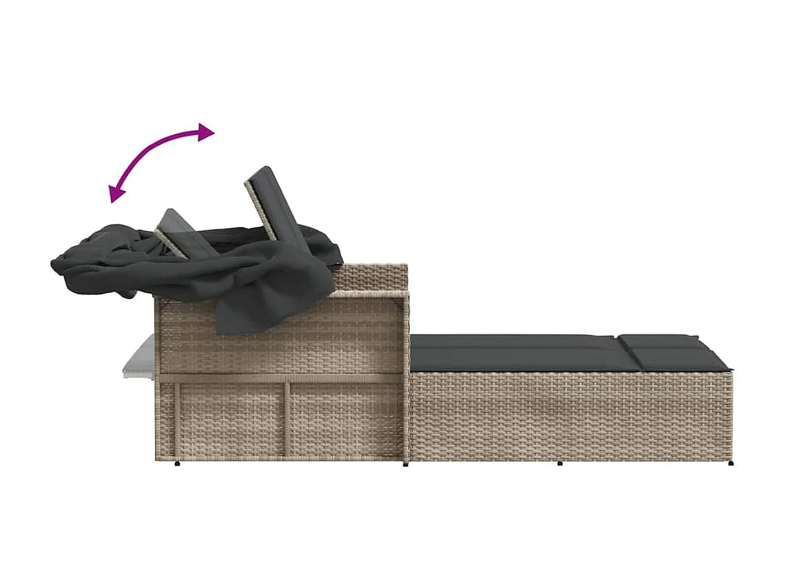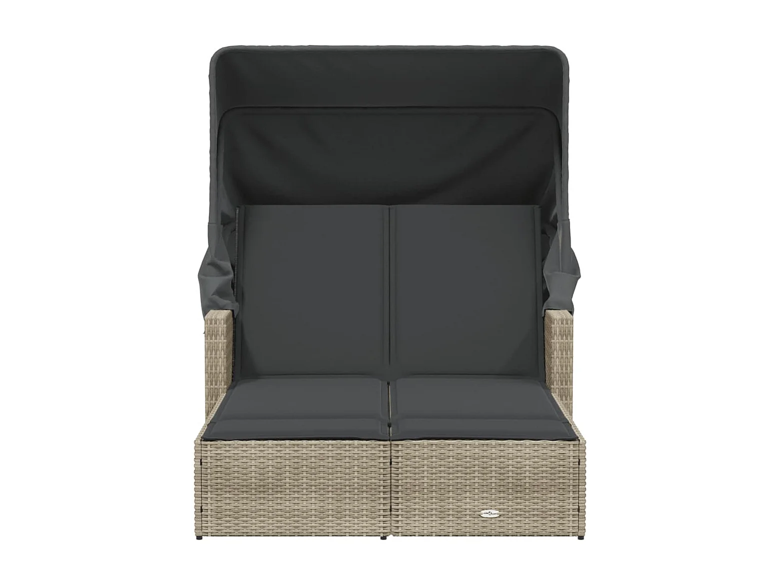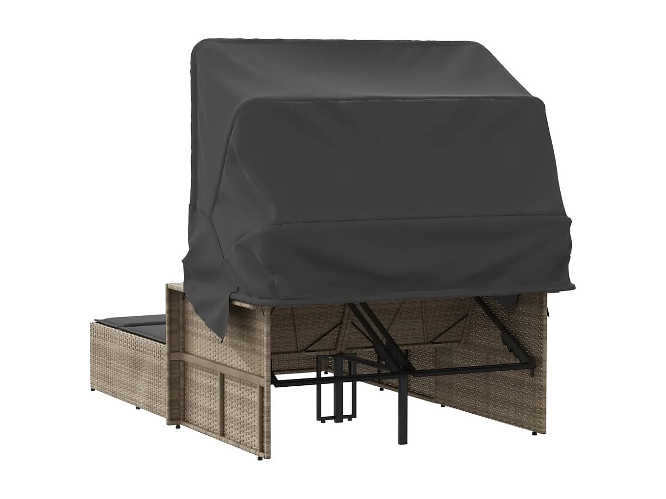 Lettino Doppio Baldacchino e Cuscini Grigio Chiaro Polyrattan