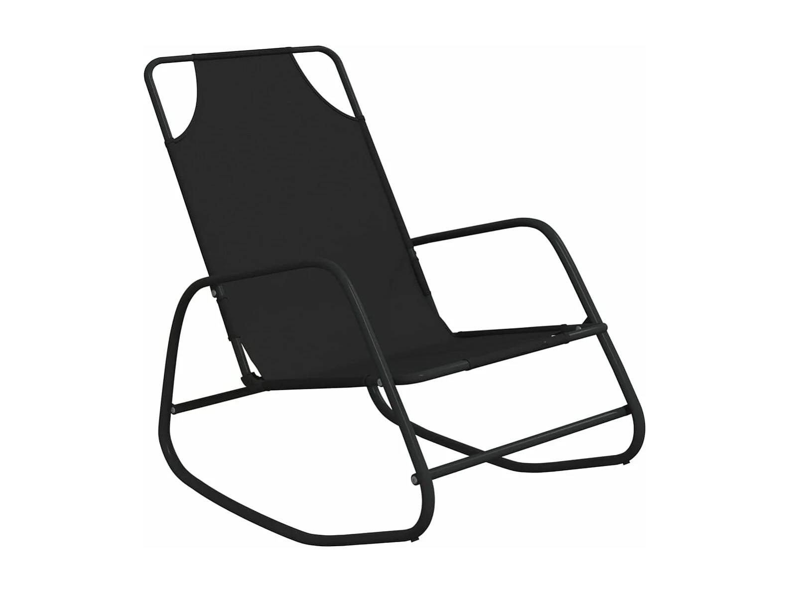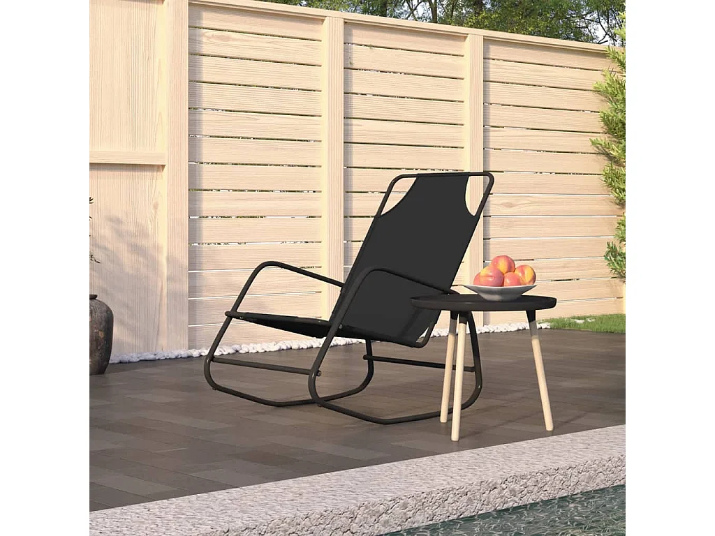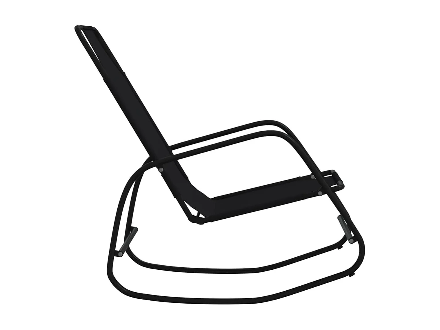 Lettino Prendisole a Dondolo in Acciaio e Textilene Nero