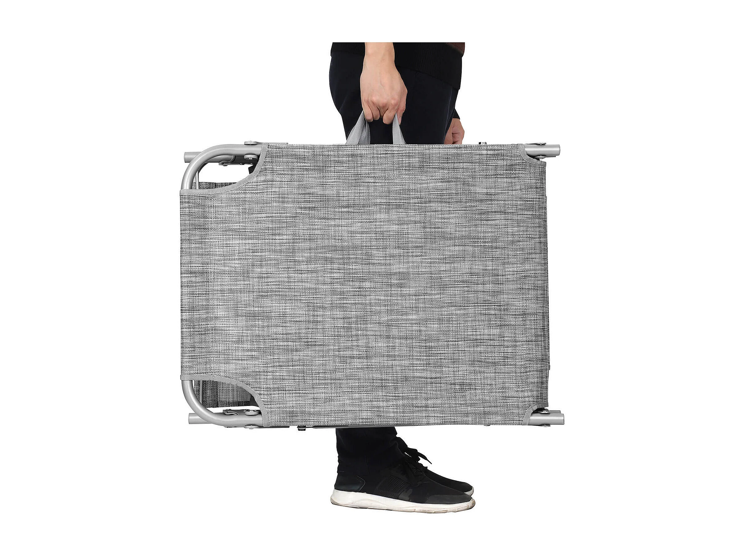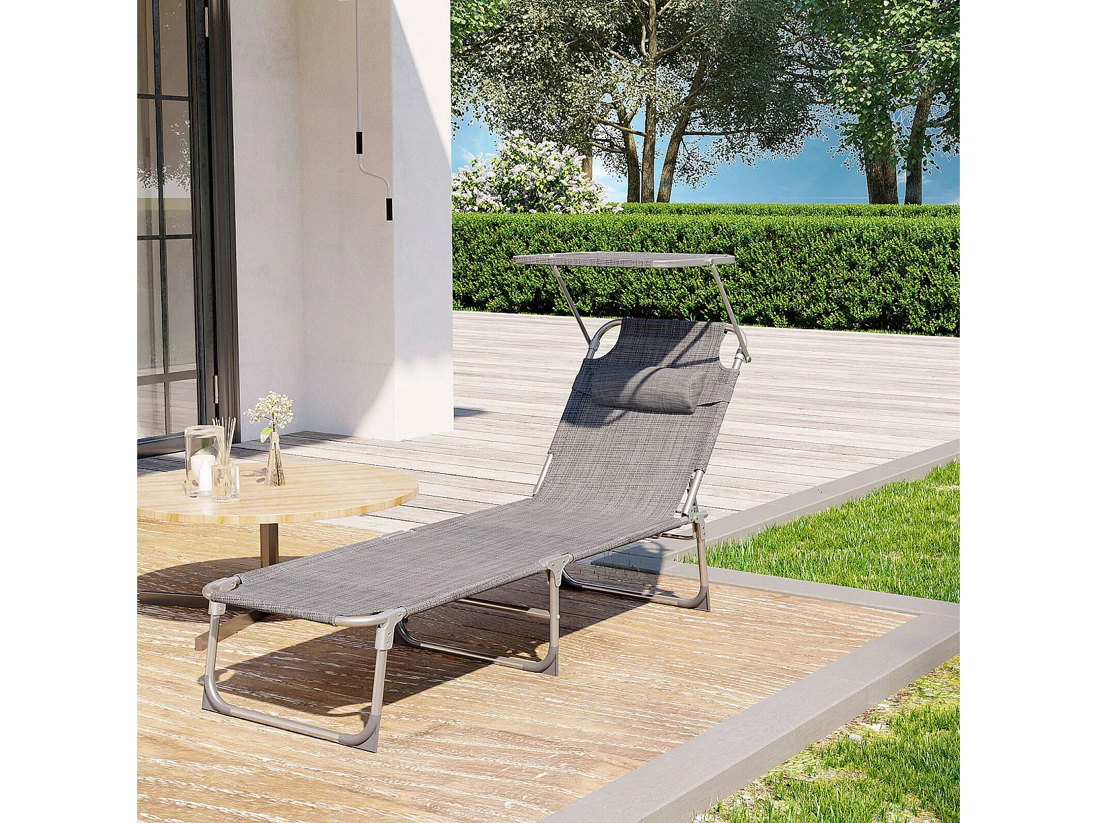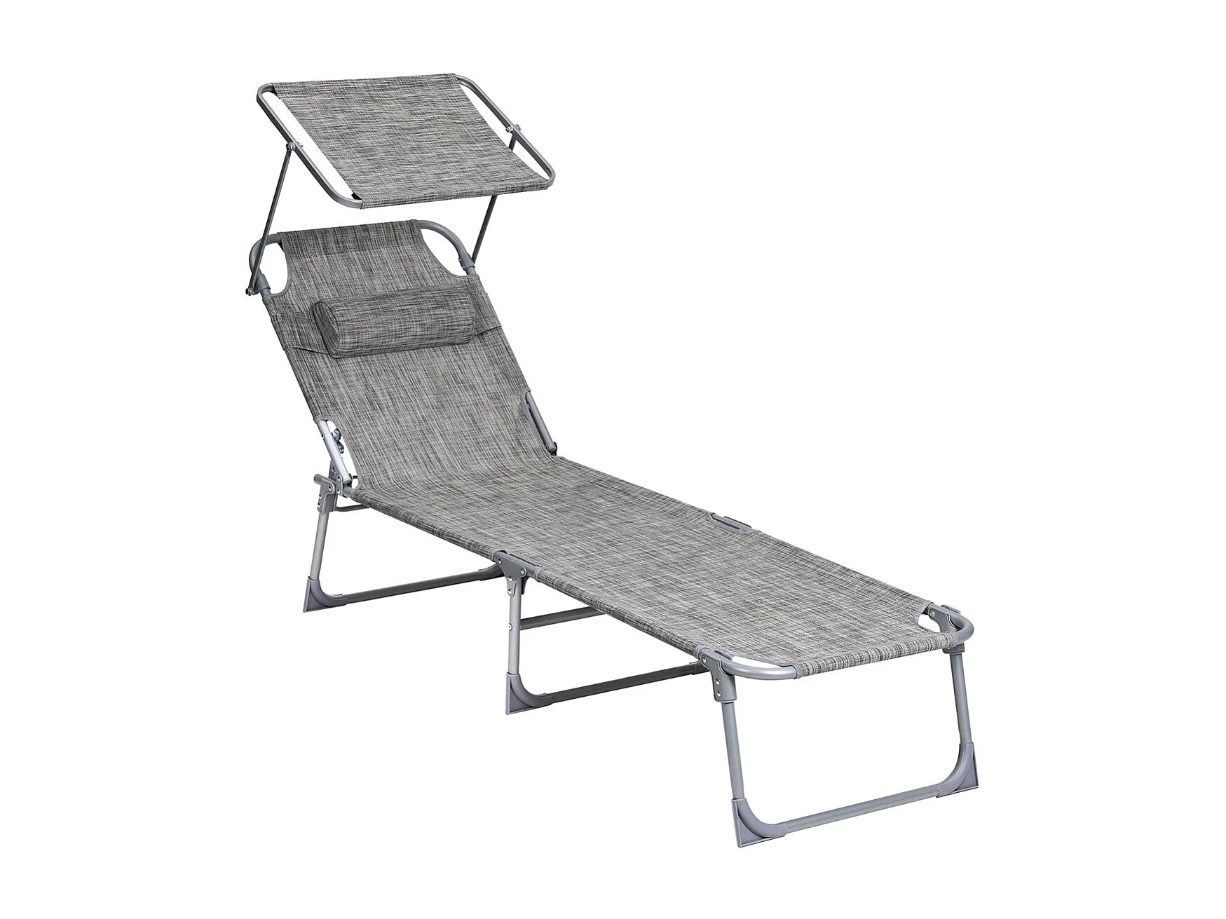 Lettino Prendisole Pieghevole Grigio Tessuto Oxford e Acciaio