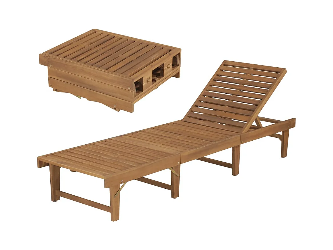 Lettino Prendisole Pieghevole in Legno Massello di Acacia
