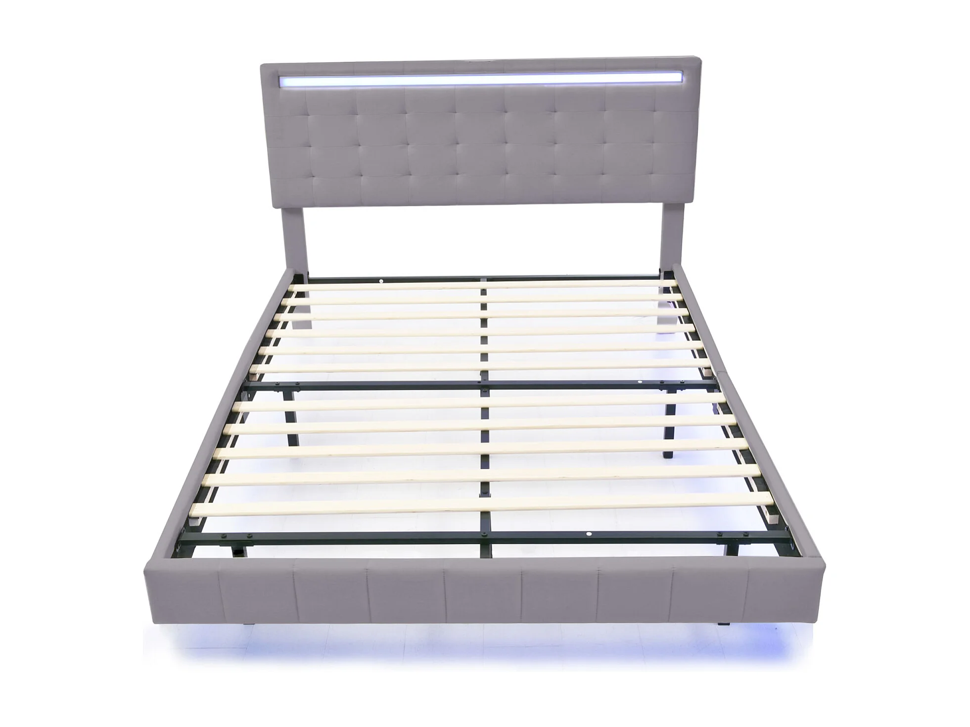 Letto 160 x 200 cm con illuminazione a LED e testiera regolabile, rete a doghe, tessuto di lino, grigio