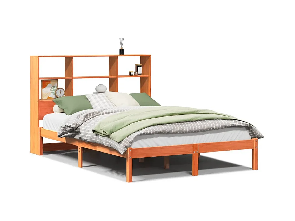 Letto a biblioteca senza materasso cera marrone 135x190 cm pino massello