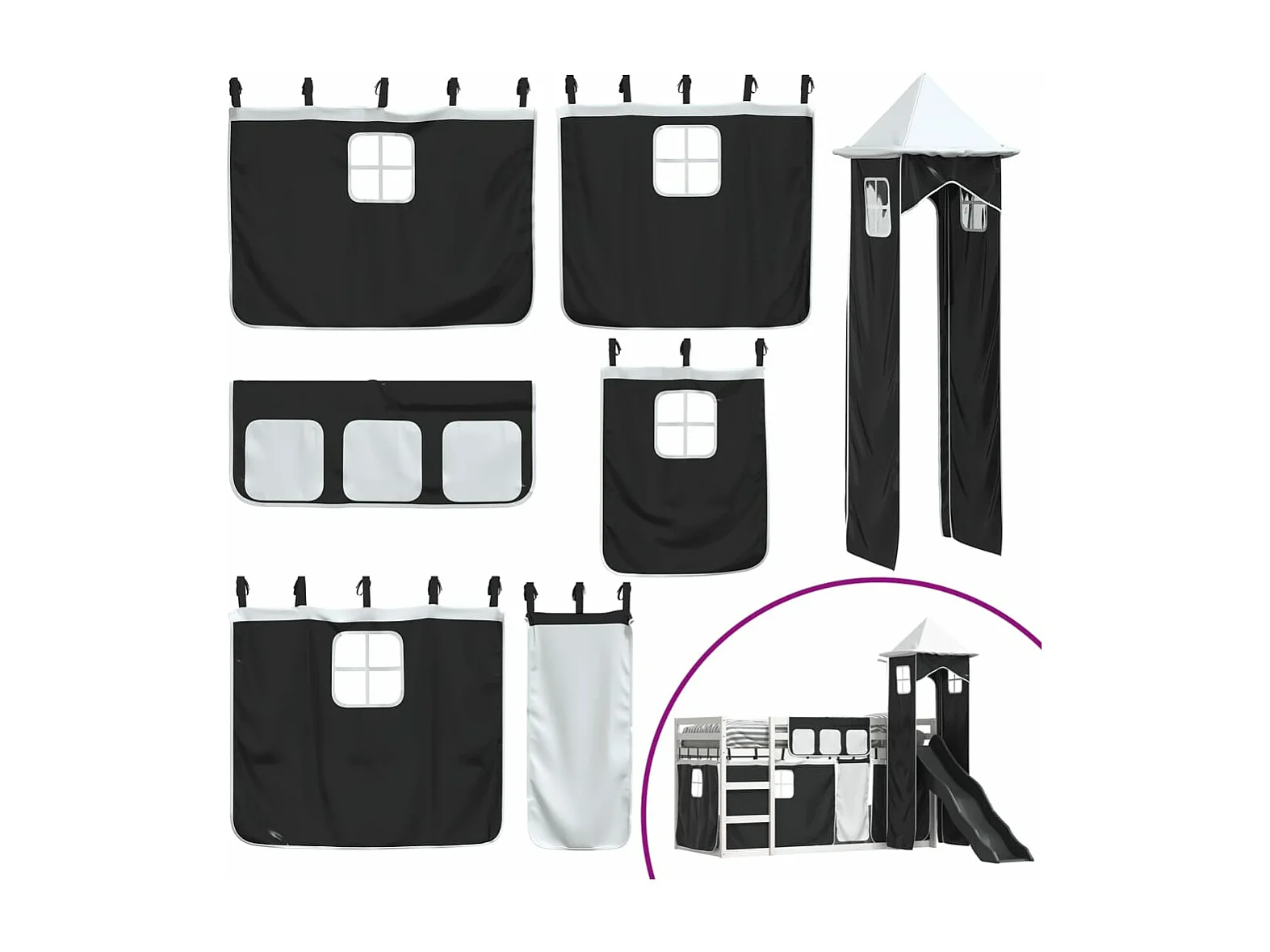 Letto a Castello con Scivolo e Tende Bianco e Nero 80x200 cm