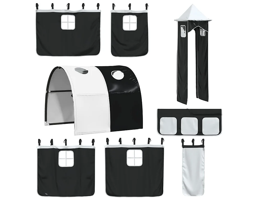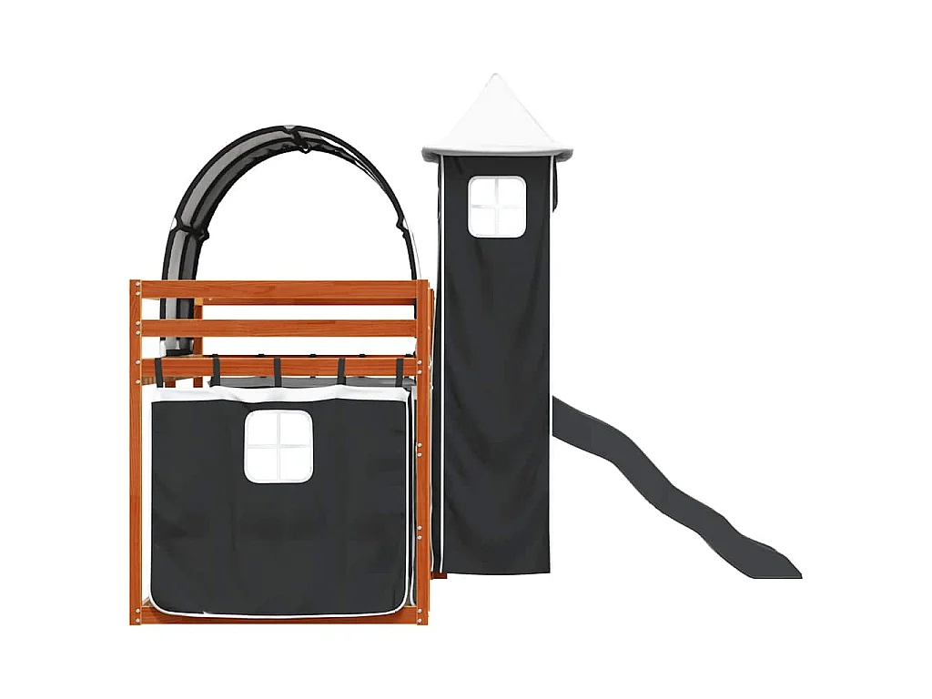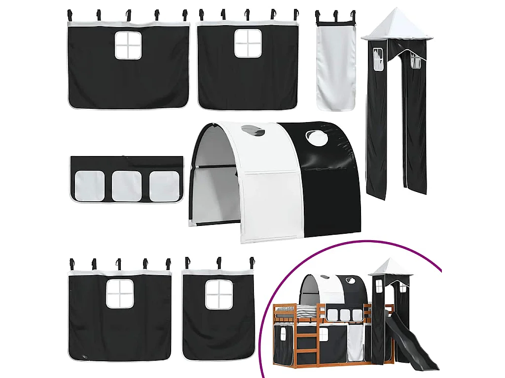 Letto a Castello con Scivolo e Tende Bianco e Nero 90x200 cm