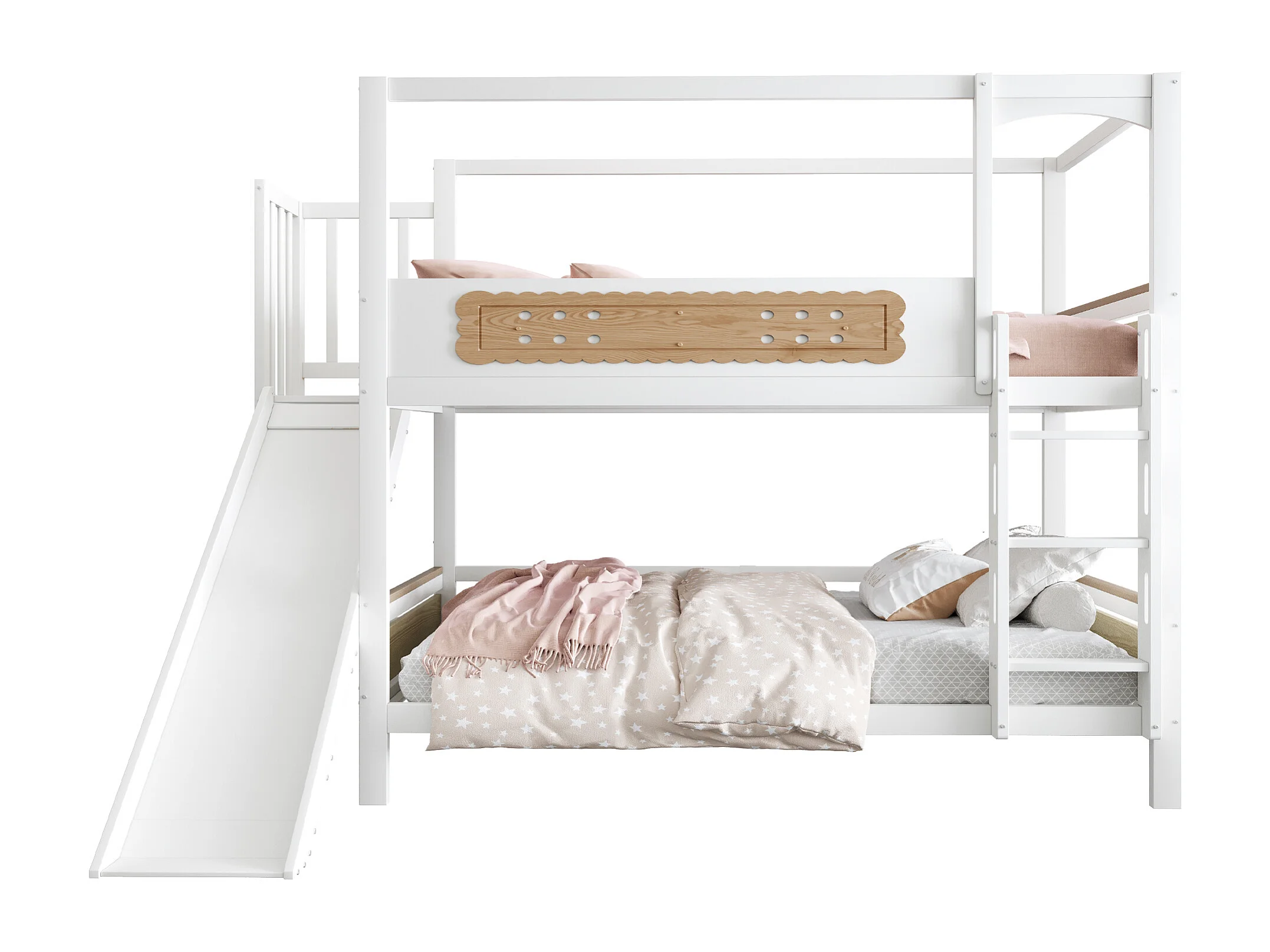Letto a castello per bambini - 2 x 90 x 200 cm - a forma di casa - con sponde + scivolo + scaletta - legno - bianco