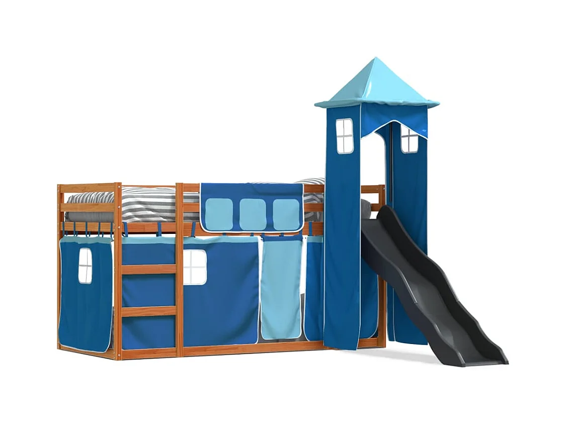 Letto a castello senza materasso con scivolo e tende 90x200 cm