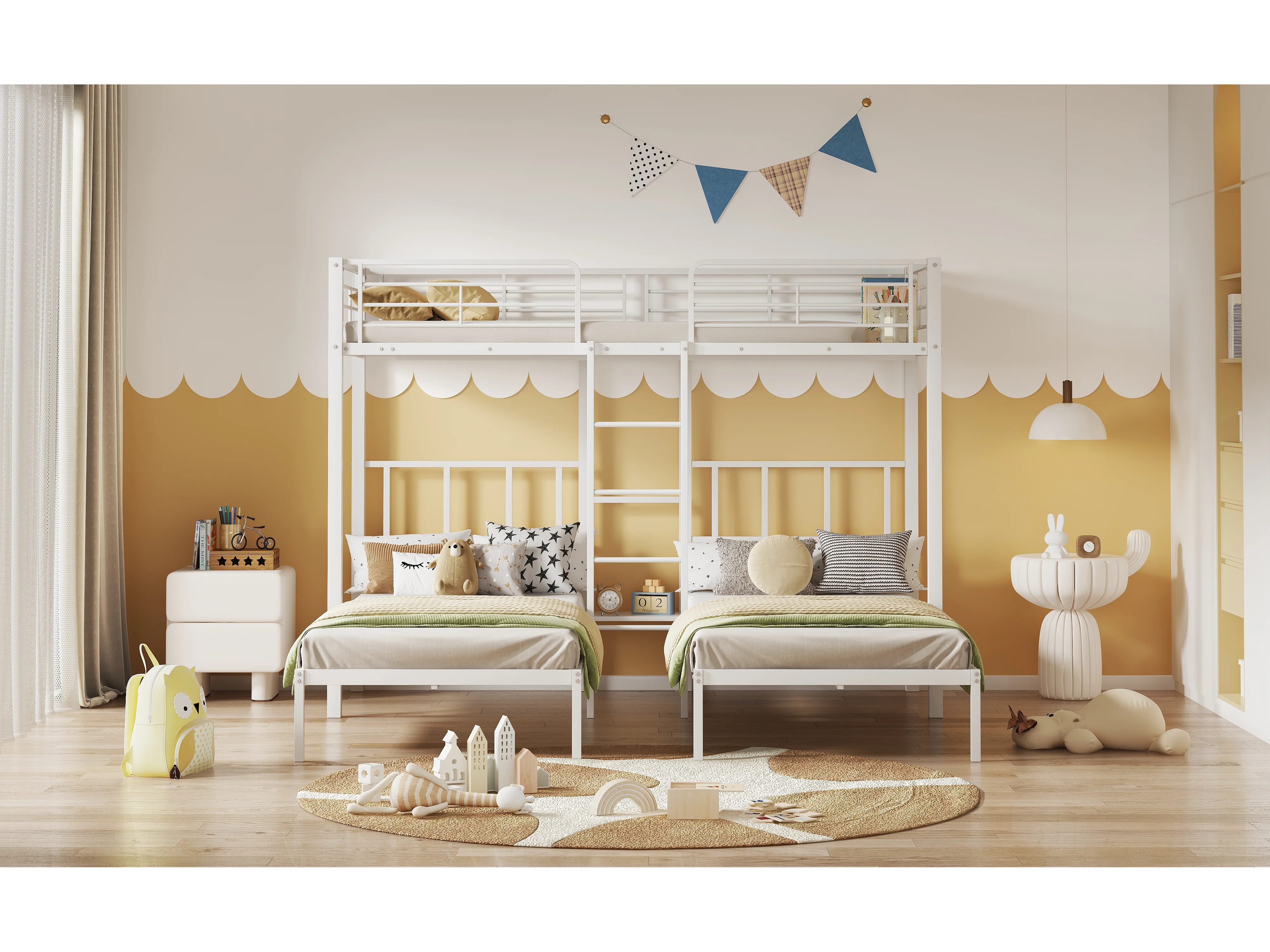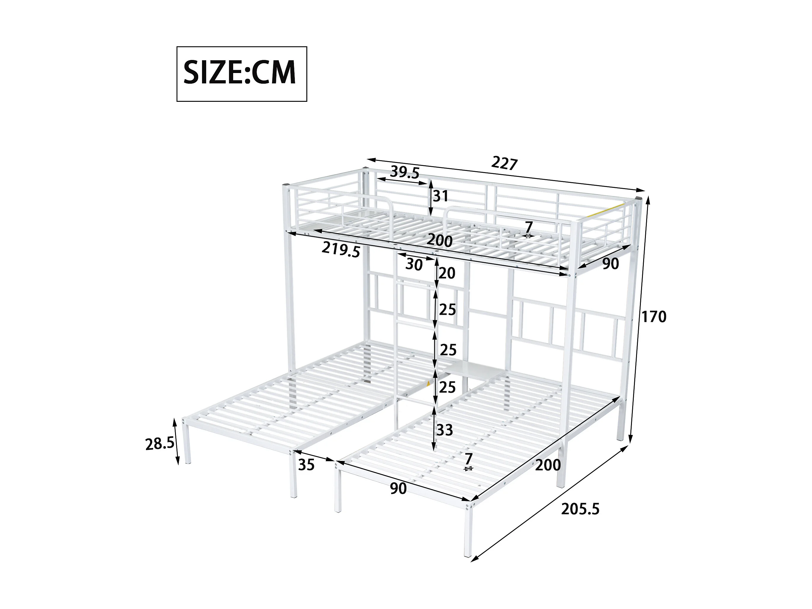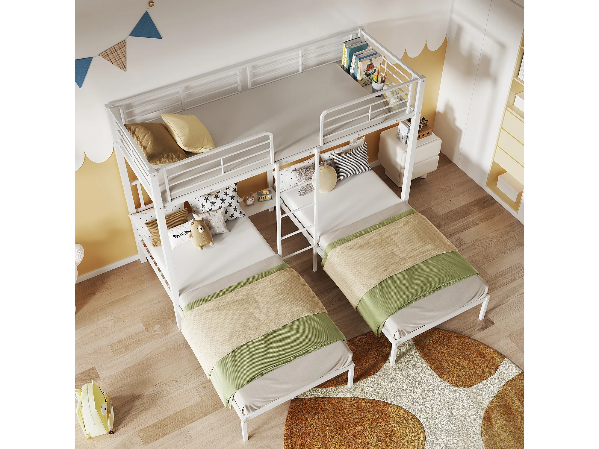Letto a castello triplo 3 x 90 x 200 cm con scaletta e comodino per bambini - metallo - bianco (senza materasso)