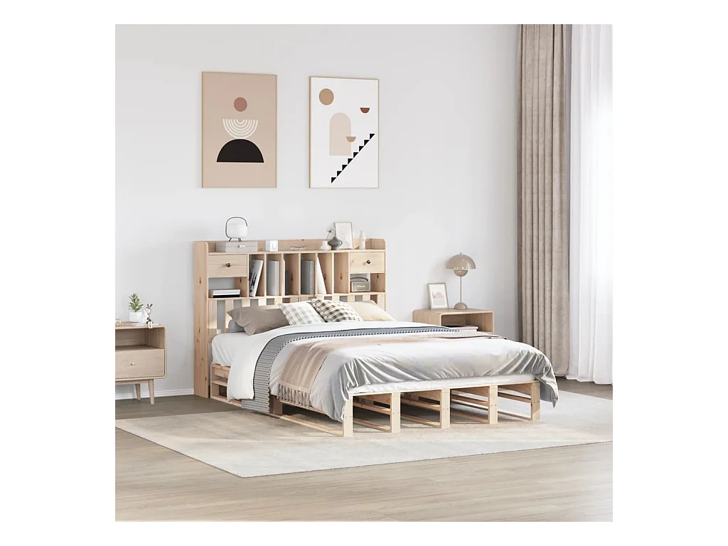 Letto libreria senza materasso, cera marrone, 160x200 cm, pino massiccio
