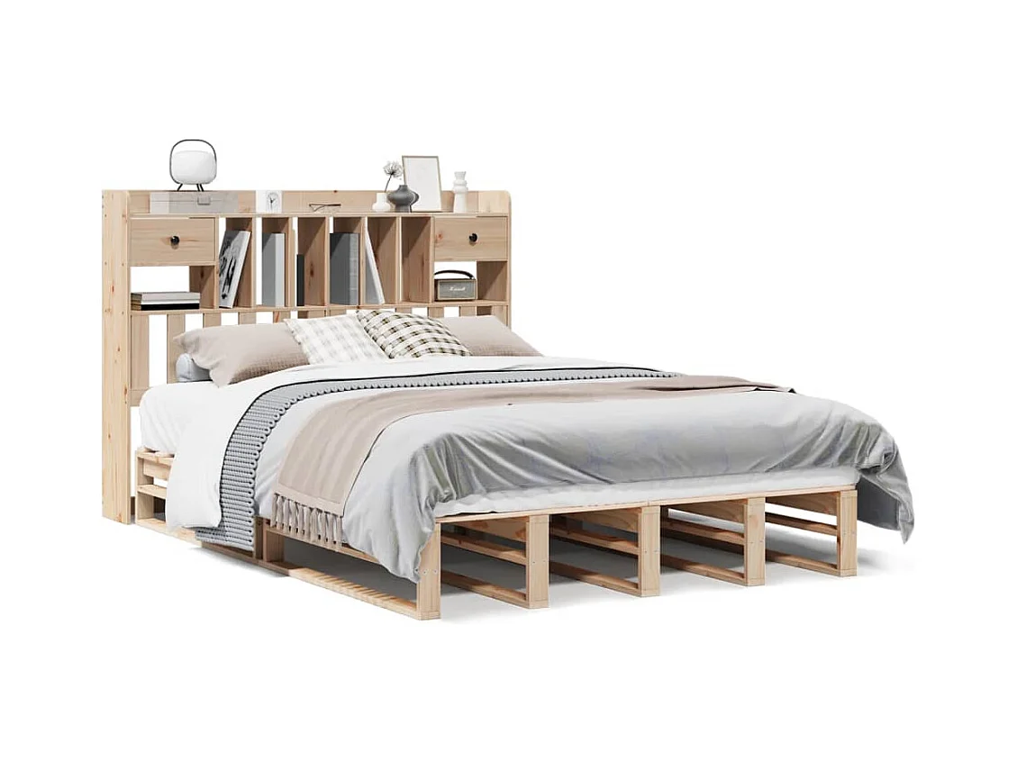 Letto a libreria senza materasso 160x200 cm in legno massello di pino