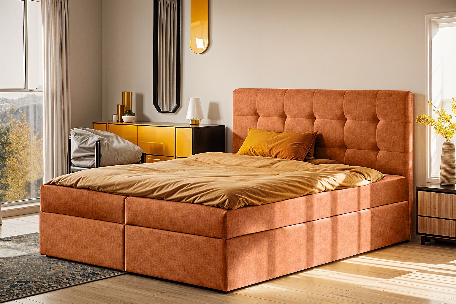 Letto a molle con materasso e contenitore, tessuto letto LUDANO Noel Orange 200x200 cm H3-Bonell