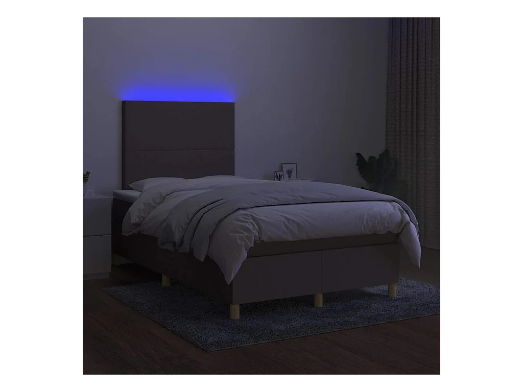 Letto a Molle con Materasso e LED Tortora 120x190 cm in Tessuto